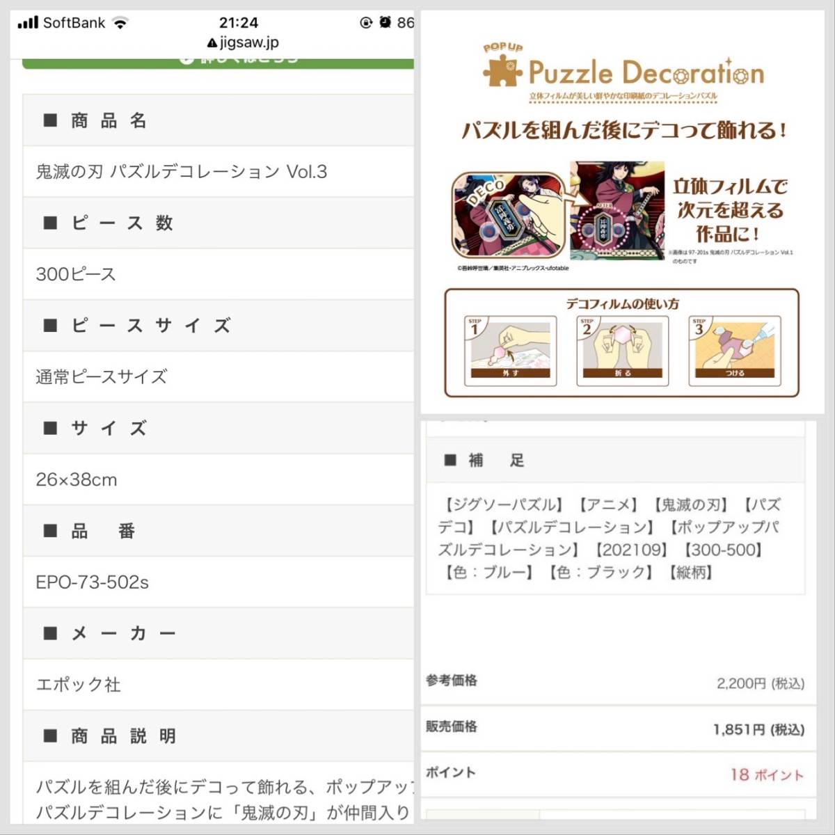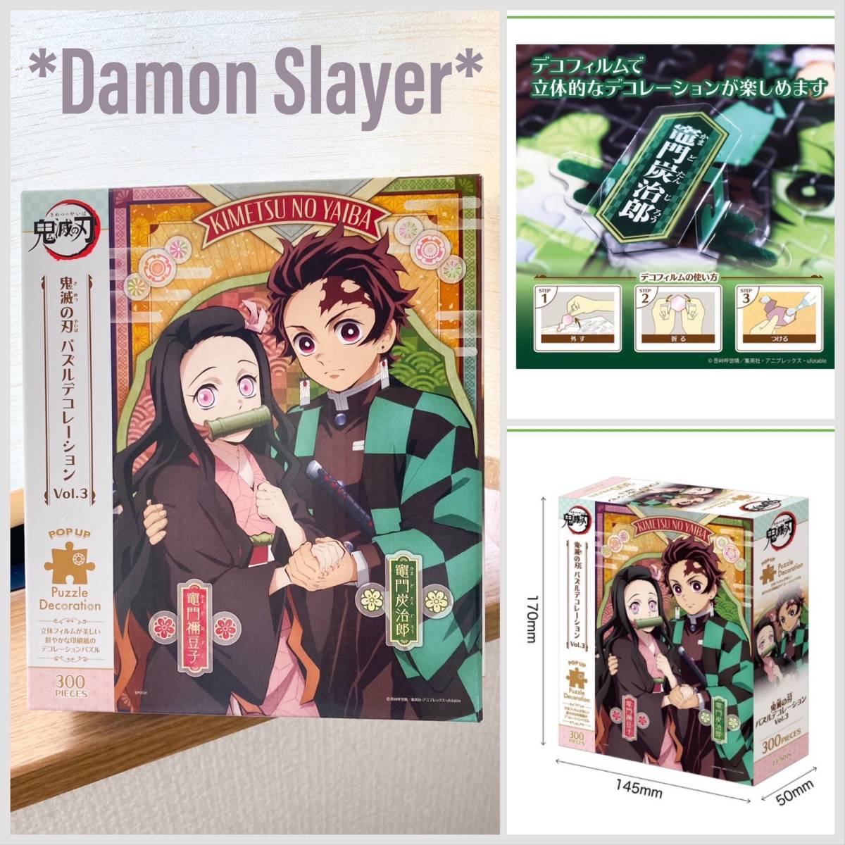 新品 定価2200円 鬼滅の刃 立体フィルム シール セット パズル デコレーション 炭治郎 禰豆子 300ピース ジグソーパズル