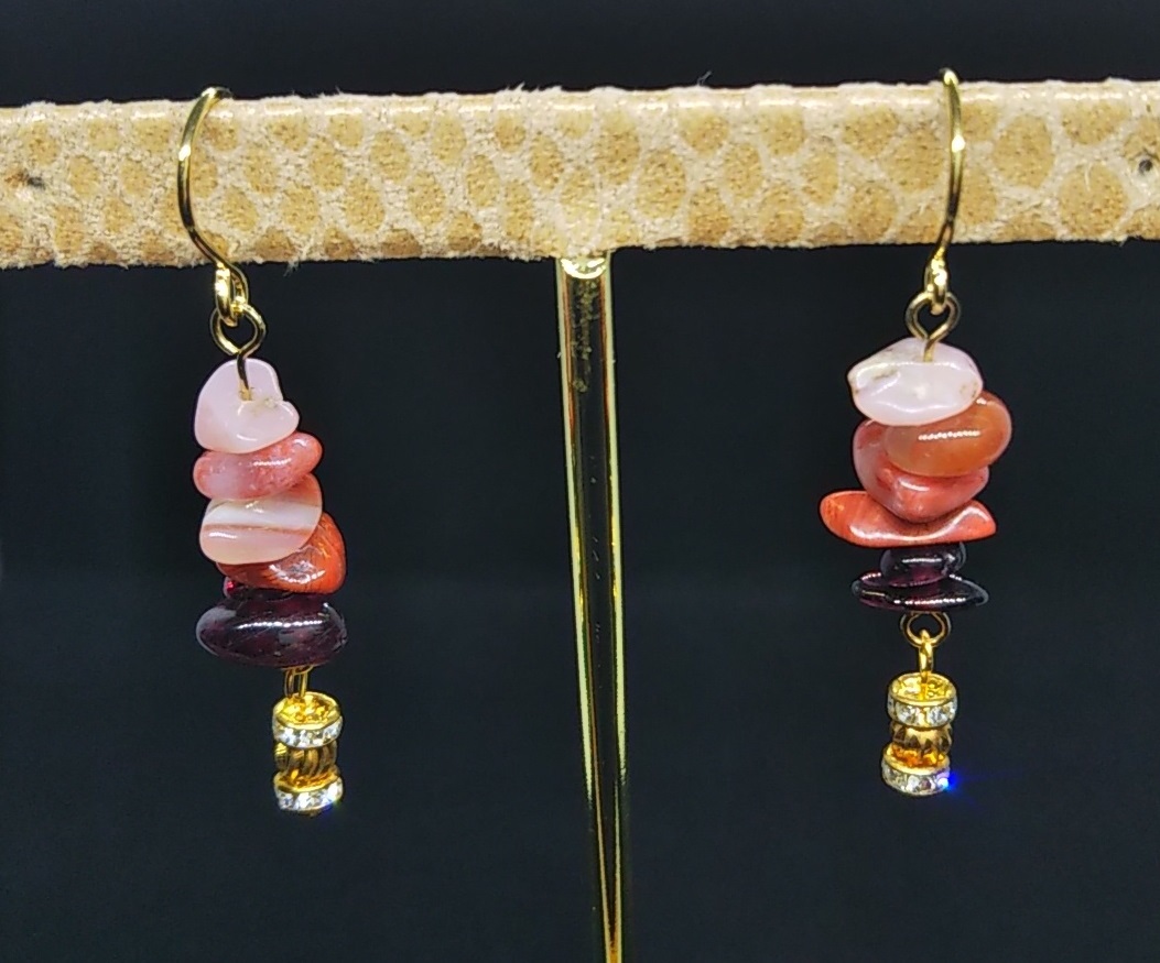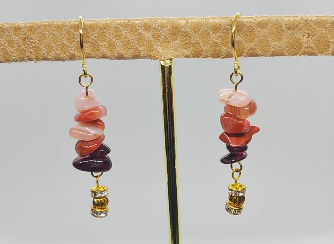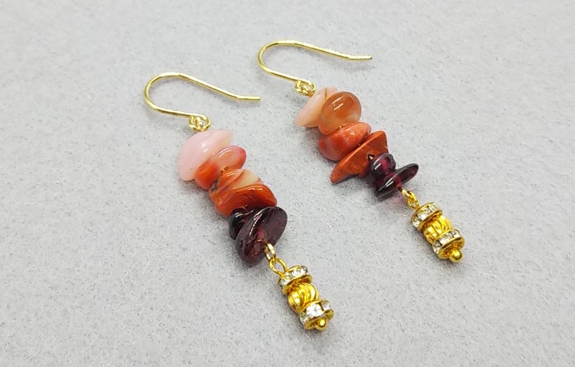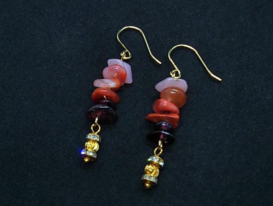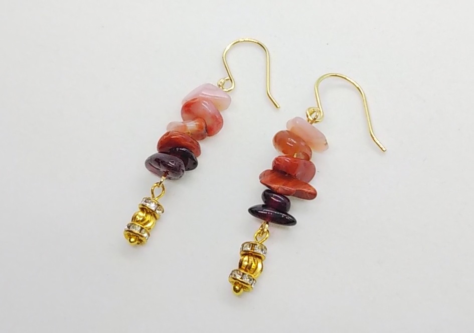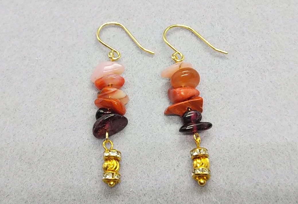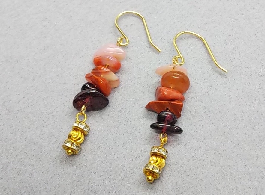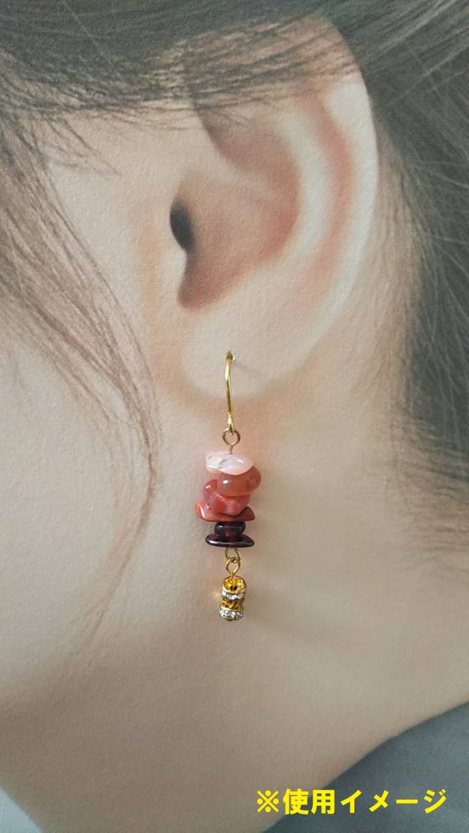 天然石付フックピアス ガーネット レッドアゲート ゴールド色 ハンドメイド e9