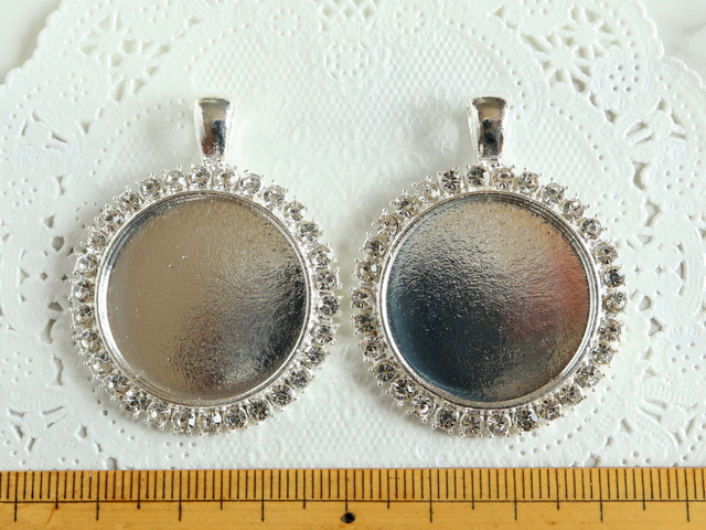 +--- バチカン付き セッティング ラインストーン シルバー 25mm 2個 ---+
