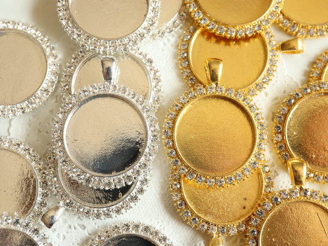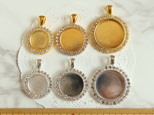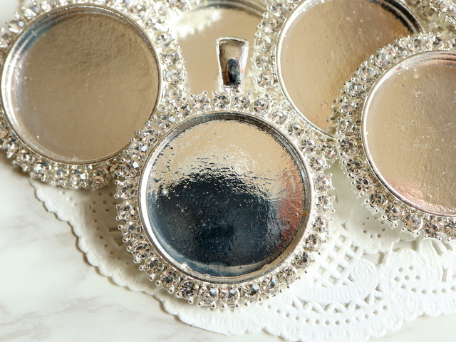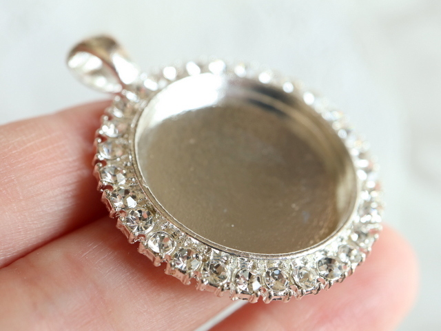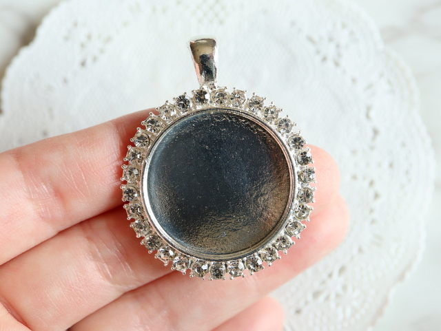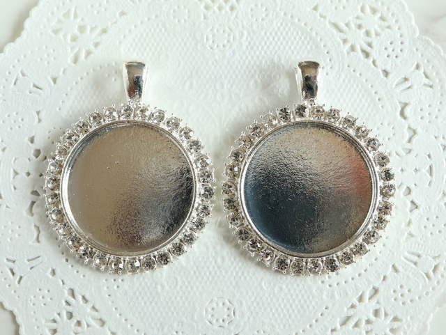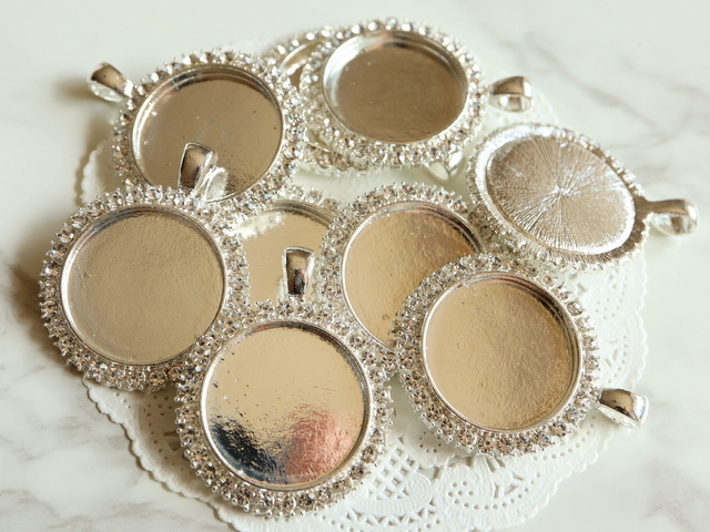 新品 レジン カメオ カボション バチカン付 セッティング ラインストーン シルバー ハンドメイド アクセサリー ペンダント パーツ 25mm 2個