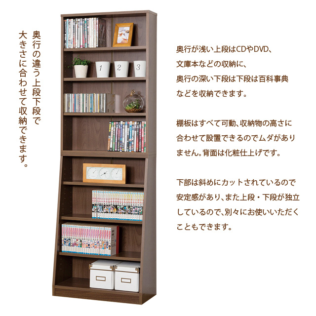 ●奥行の深い下段は、A4サイズや、百科事典などが収納できる奥深設計。