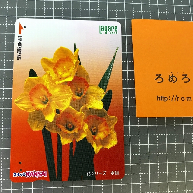 ∞●【使用済カード♯9197】スルッとKANSAIラガールカード「水仙/花シリーズ」阪急電鉄【鉄道/電車】