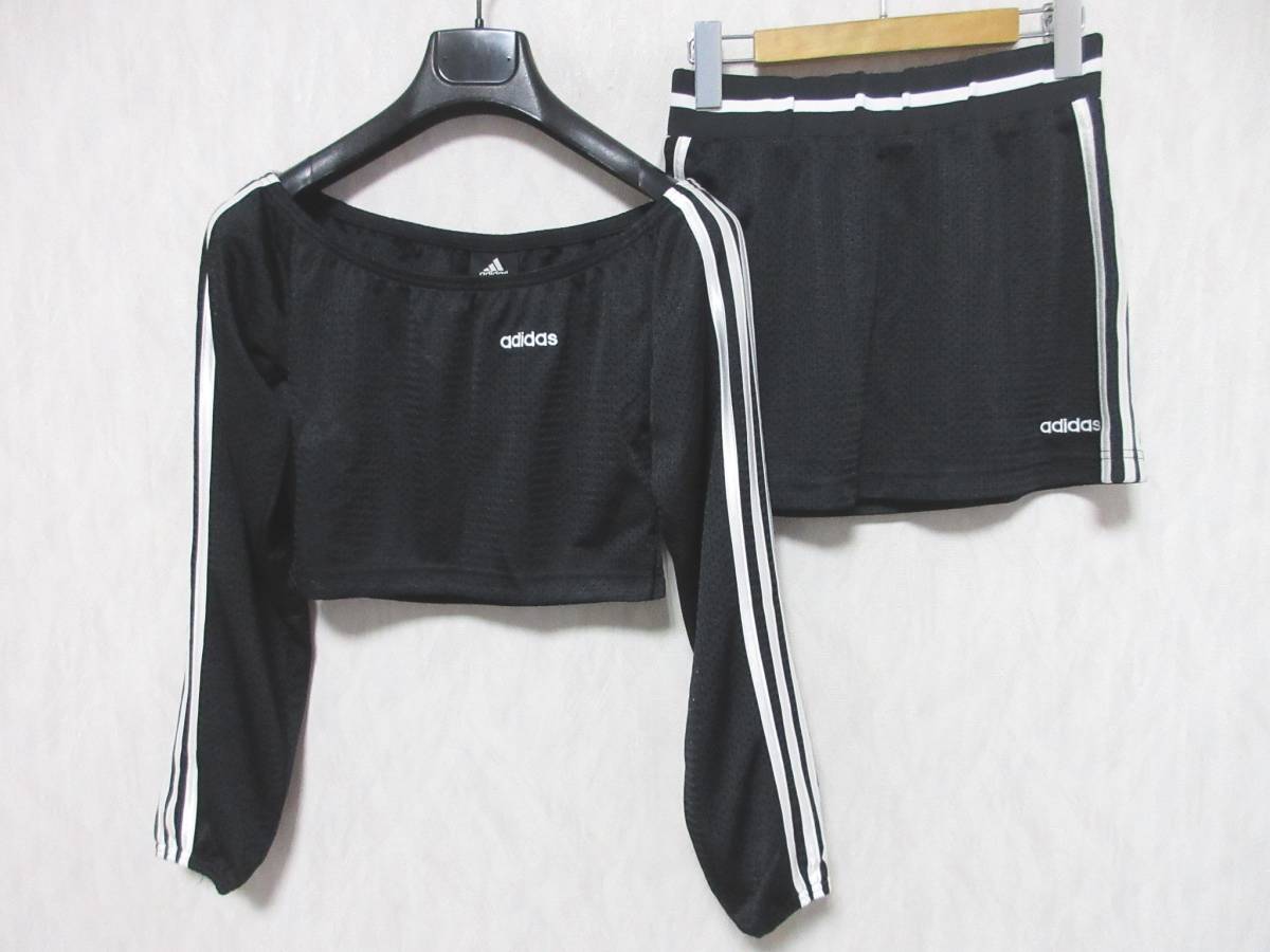 アディダス adidas セットアップ クロップドトップス ミニスカート 黒 ブラック irmri 亥3194