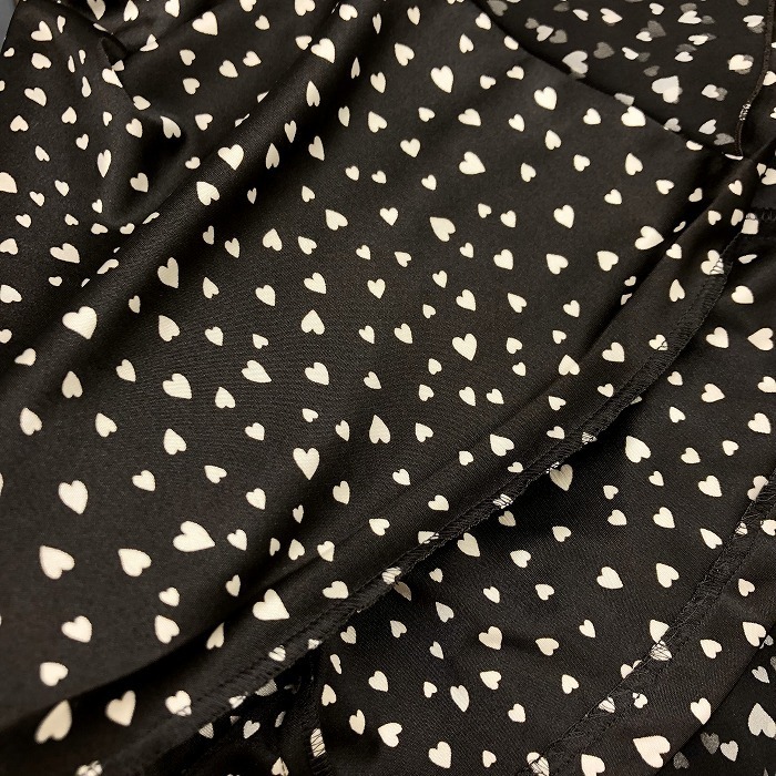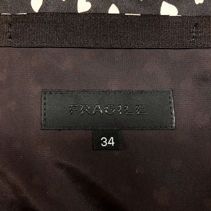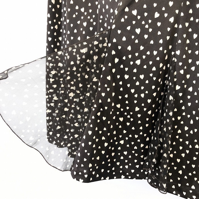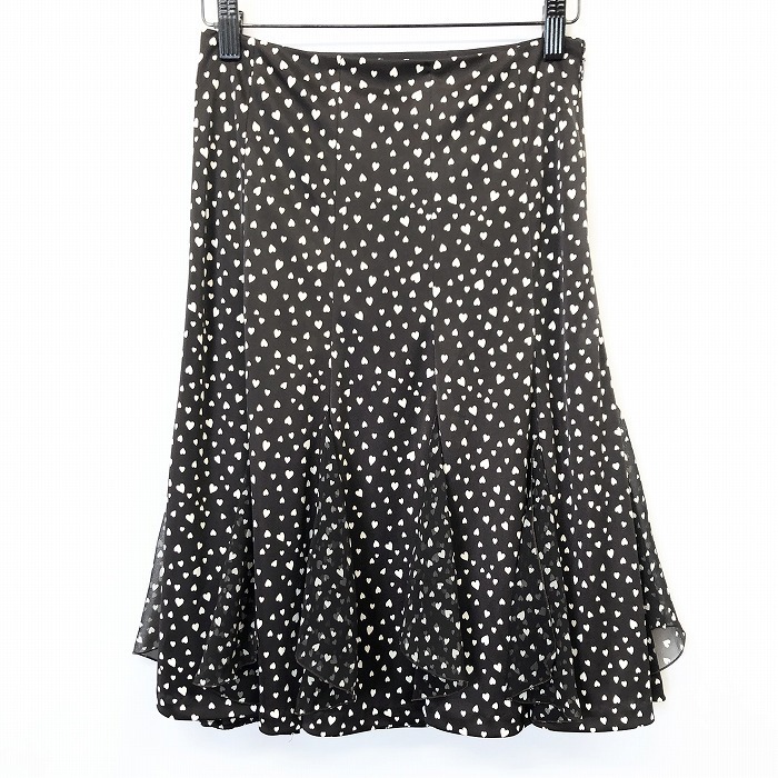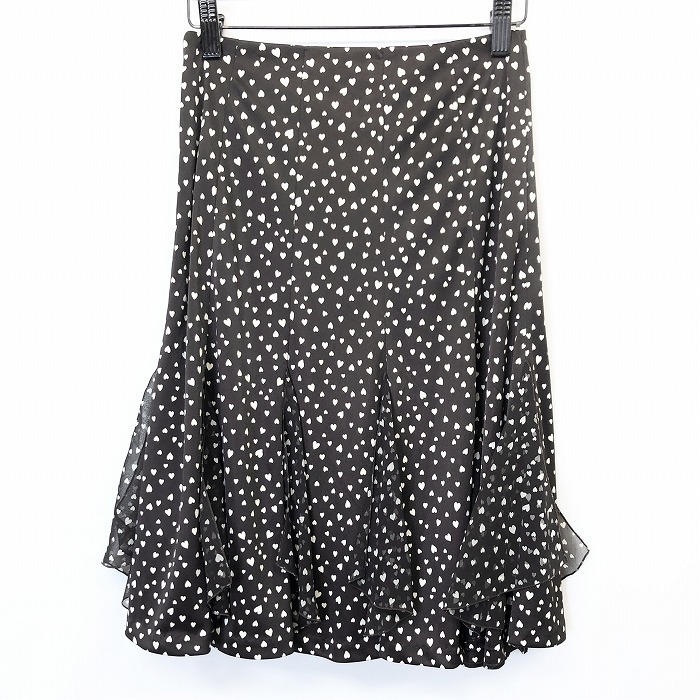 | 商品タイトル | FRAGILE フラジール 34 レディース 薄手 スカート フレア 裏地付き ハート柄 裾にシフォンフリルデザイン ポリ100% ダークブラウン こげ茶 |