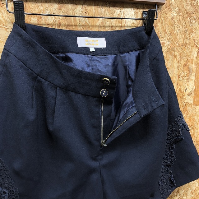 商品タイトル | MINIMUM MINIMUM ミニマムミニマム 1 レディース ワイドショーツ ショートパンツ 花柄レース付き 裏地付き ポリ×レーヨン ネイビー 紺 |