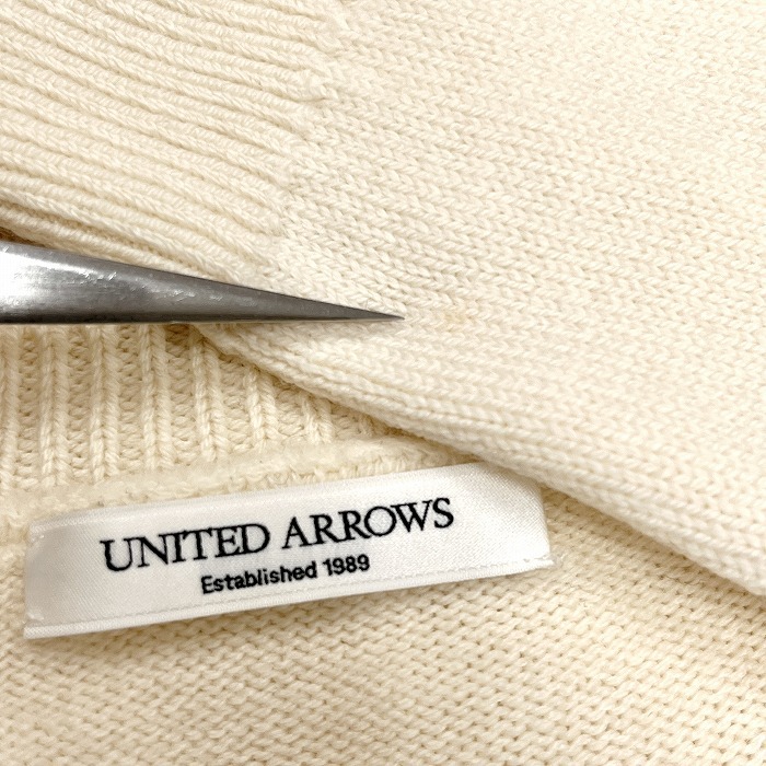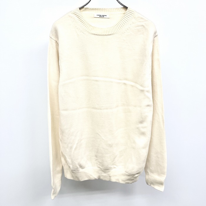 | 商品タイトル | UNITED ARROWS ユナイテッドアローズ M レディース(メンズ?) 若干薄手 ニット セーター 無地 長袖 日本製 ウール100% アイボリー 生成り色 |