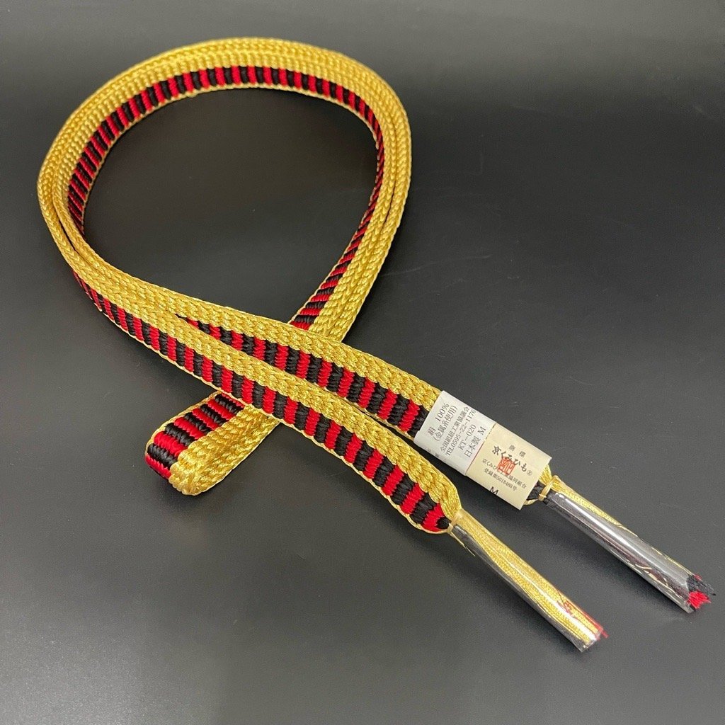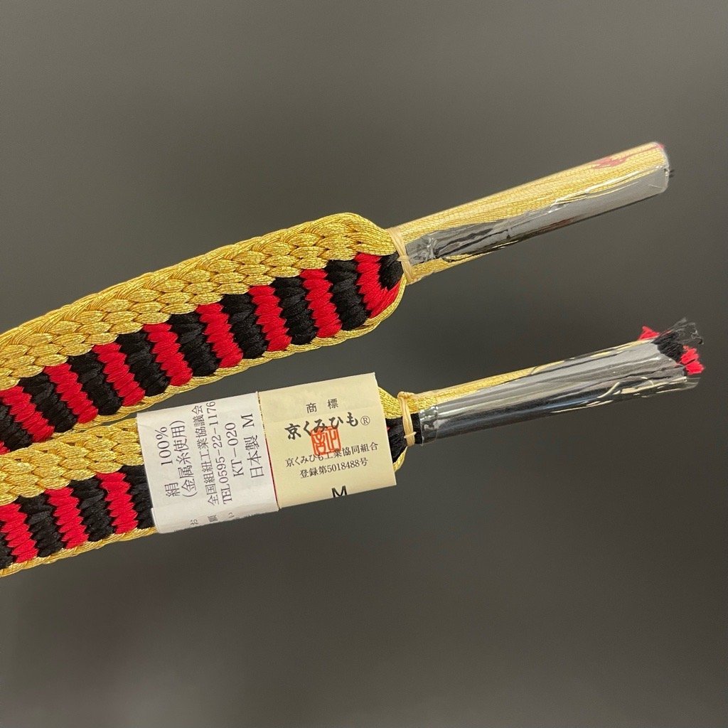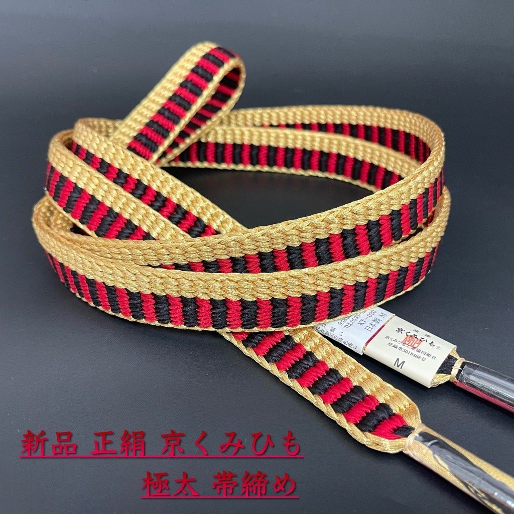 着物さと 新品 極太 広幅 高級 帯締め 正絹 京くみひも 金 赤 黒 着物 和服 振袖 訪問着 成人式 縞 ストライプ 稀少 可愛い 美品