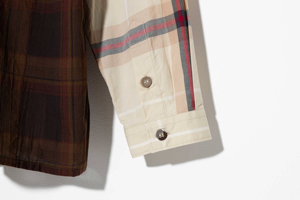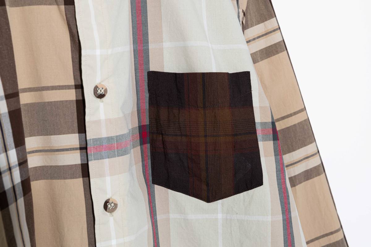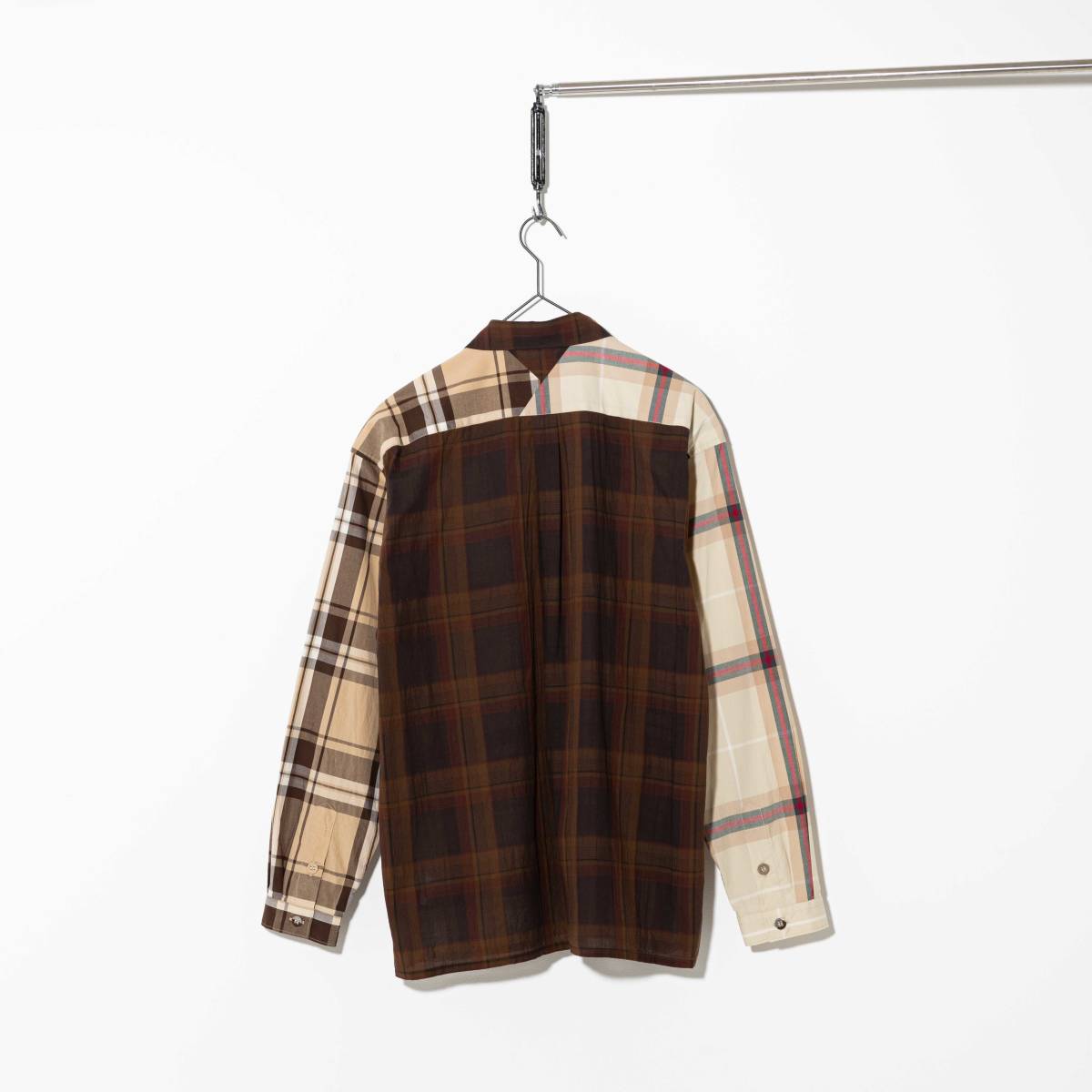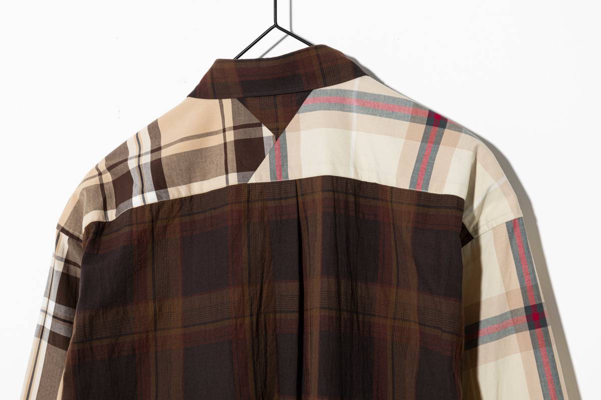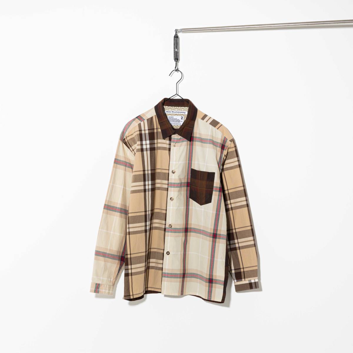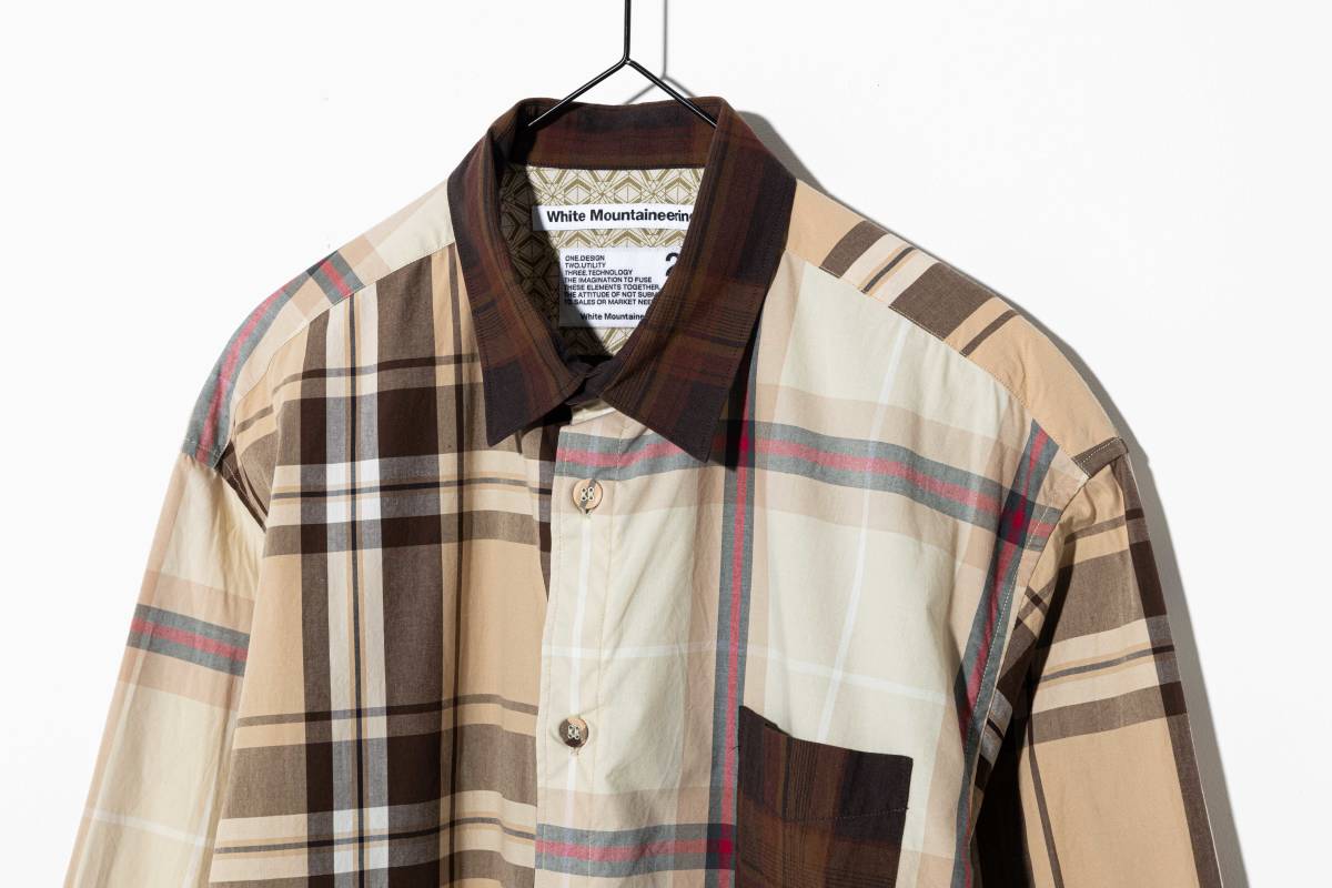 大柄な3種類のチェックをWMらしく絶妙なバランスでランダムに組み合わせたチェックシャツ。