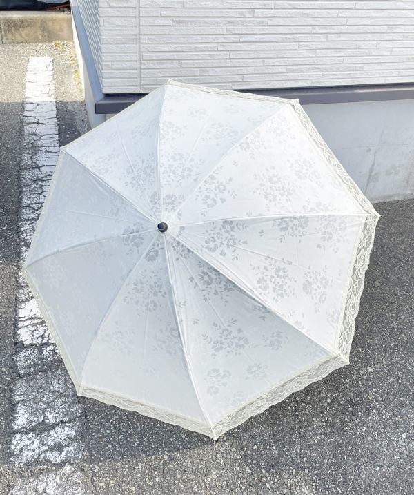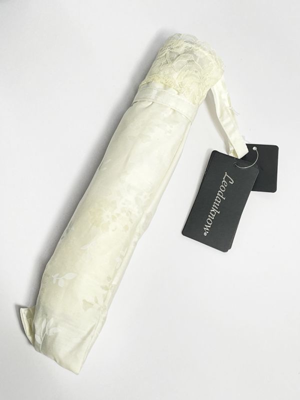 レースが上品でおしゃれな折りたたみ傘です。 晴雨兼用でお使い頂けます。 軽量で軽い傘となっております。 これからの季節にいかがでしょうか。 |