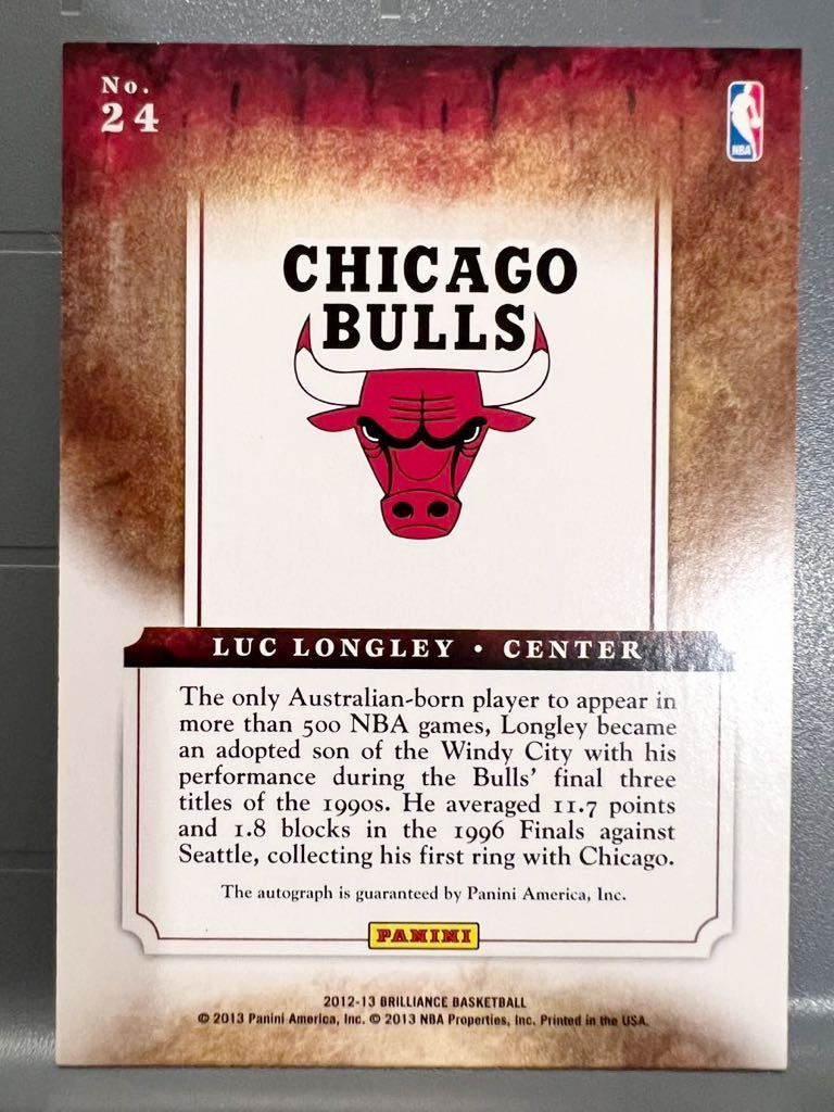 激レア初期/199枚限定 Auto Bulls 3連覇 12 Panini Luc Longley ルーク・ロングリー 直筆 サイン NBA Bulls ユニフォーム バスケ 豪代表