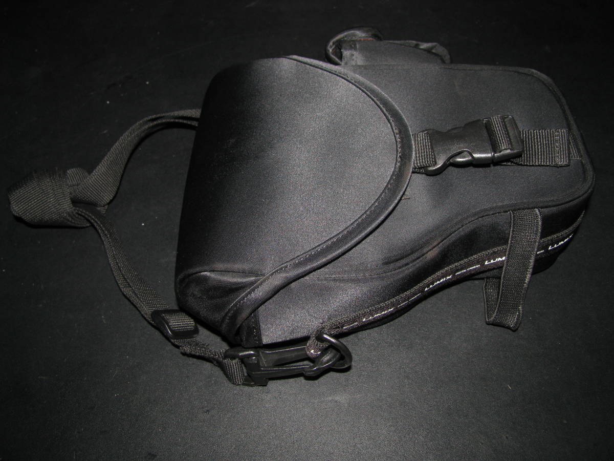 Panasonic LUMIXのデジタルカメラケースです。色はブラック、サイズは約22X15-10X7㎝、ショルダーベルト付です。適合機種は不明です、ご了承ください。定形外郵便660円でお送りいたします。