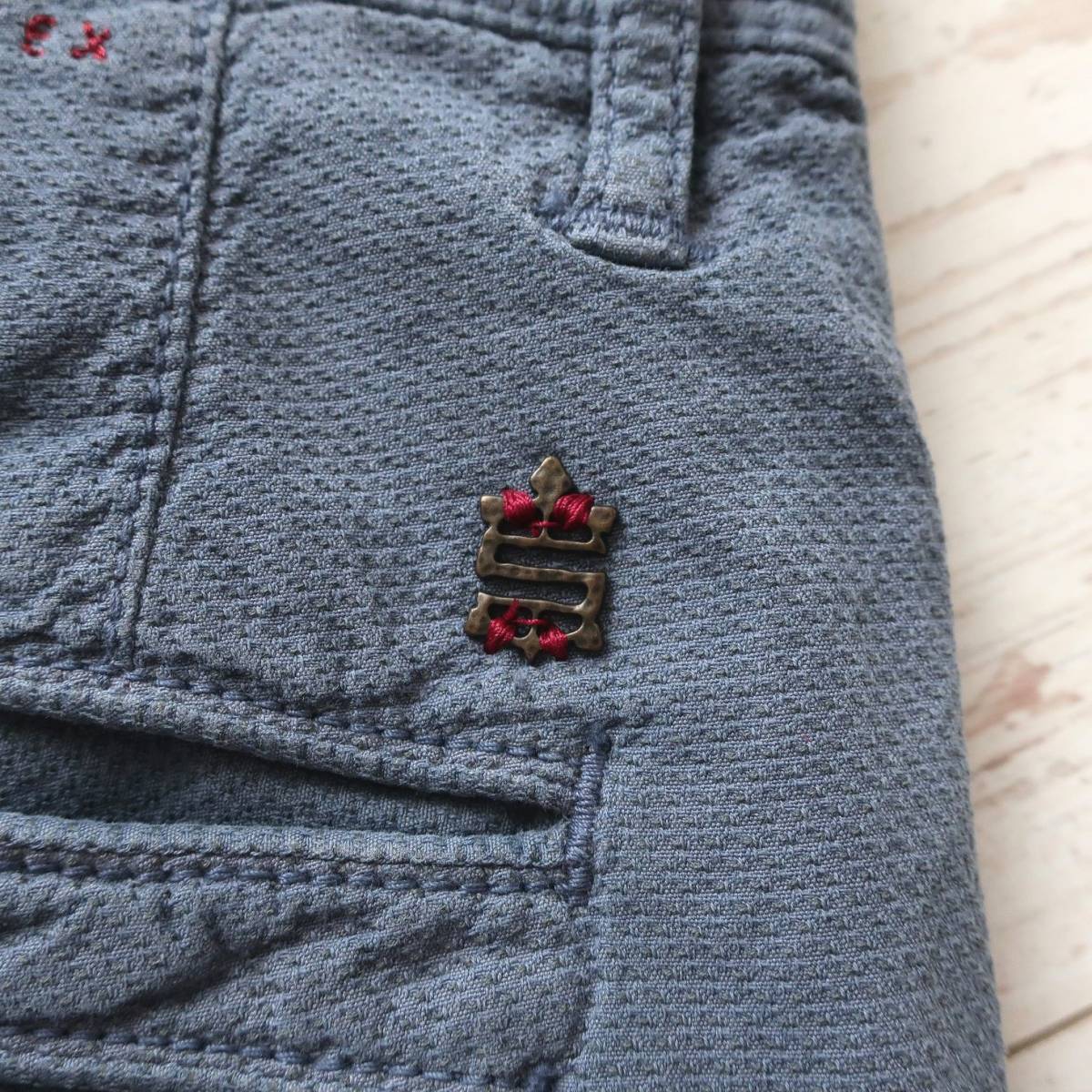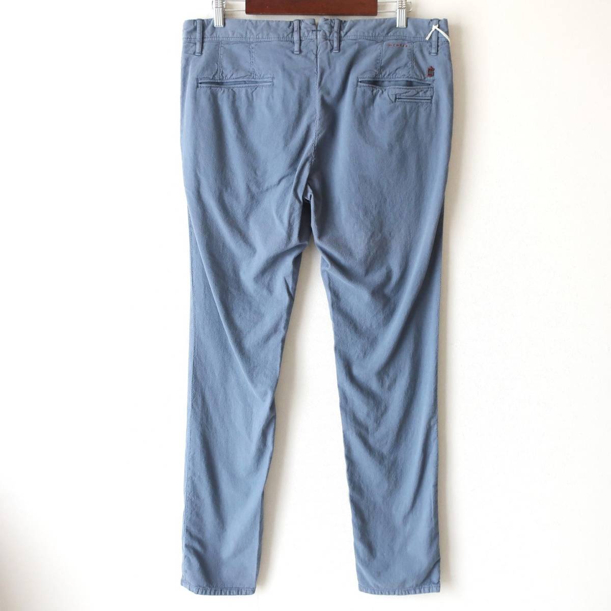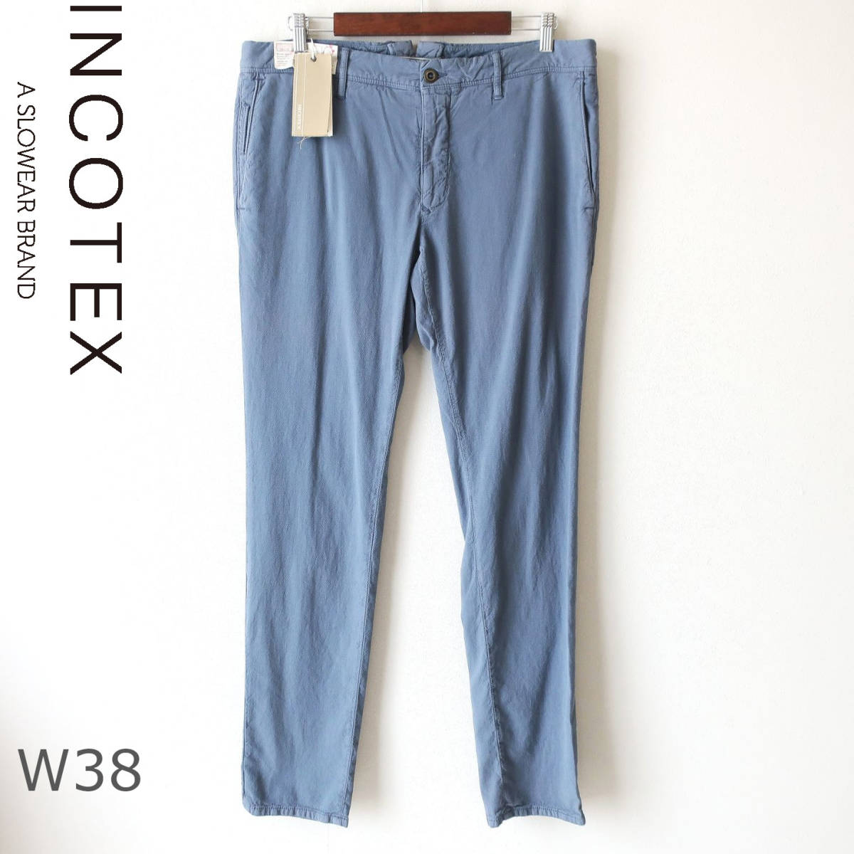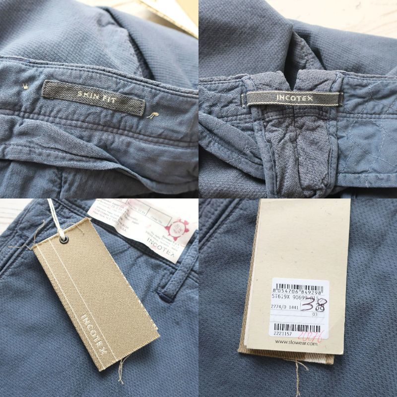 新品 未使用 INCOTEX インコテックス スリム スキニー チノパン ストレッチ 細身 タイト 織柄 パンツ 青 ブルー グレー メンズ W38 3XL 4L