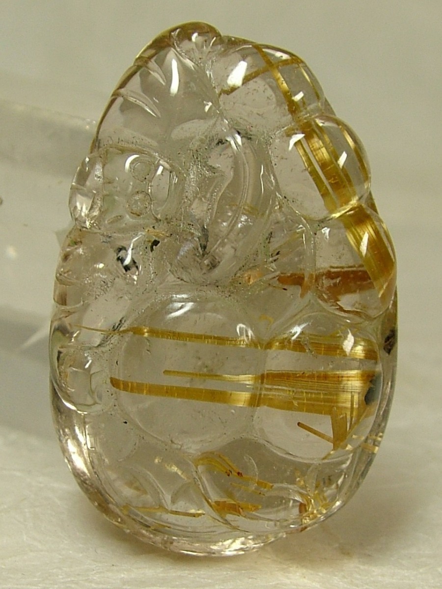 ★商品説明★ | サイズ:41×27×厚14mm 重さ:22.9g 金色の針状結晶が板状に発達したタイチンルチル。タイチンは、最近では中国でも価格が上がり、次第に手に入りにくくなっています。晶体もかなりクリアです。縁起柄の蝙蝠が彫り込まれています。石コレクションやお守りに。上部に貫通穴が有るのでペンダントトップや下げ飾りにもなります。 ●タイチンルチル:ビジネスチャンスやギャンブル運を向上させる金針水晶の中でも、最高のエネルギーを持つと言われています。 |