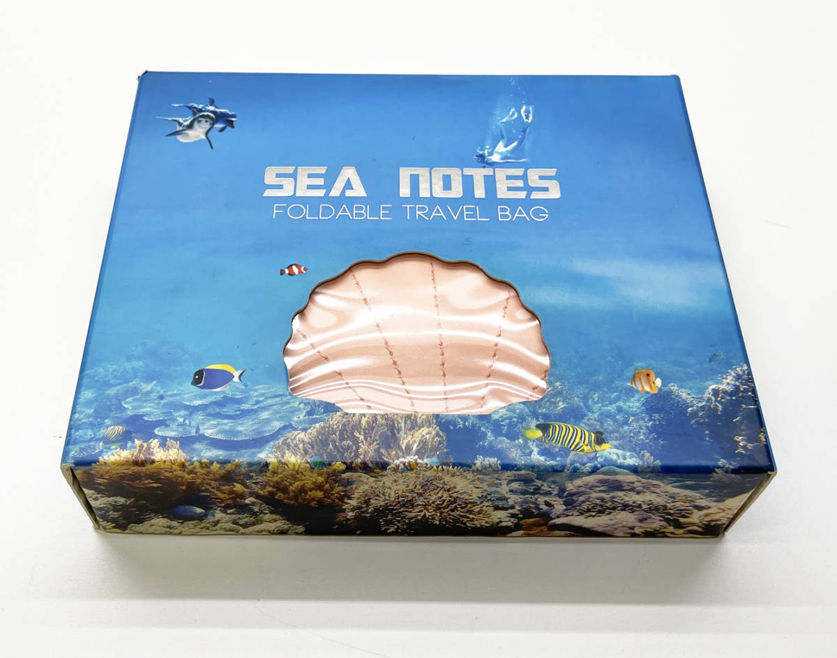 *[s3e03] SEA NOTES FOLDABLE TRAVEL BAG トートバッグ 折りたたみ式 貝殻ポーチ型 420×360mm,旅行,携帯,おしゃれ,鞄 ★ 未使用品