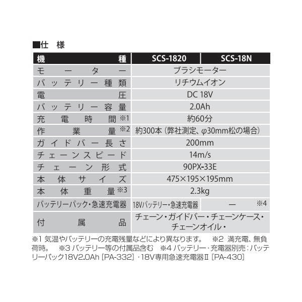 ※ 18V 2.0Ah バッテリー・充電器付 SCS-1820 の商品ページに移動します。