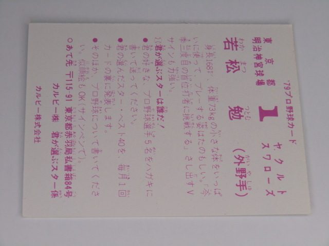 B2 美品 1979 カルビ-プロ野球カード 若松 勉 選手 (ヤクルトスワローズ)