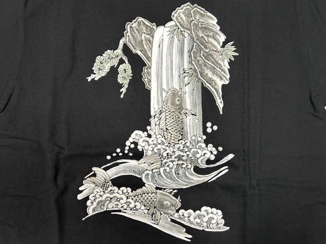 【滝登鯉】■黒■Mサイズ■3960円■半袖Tシャツ■むかしむかし 和柄 立体プリント