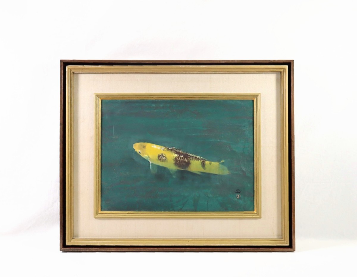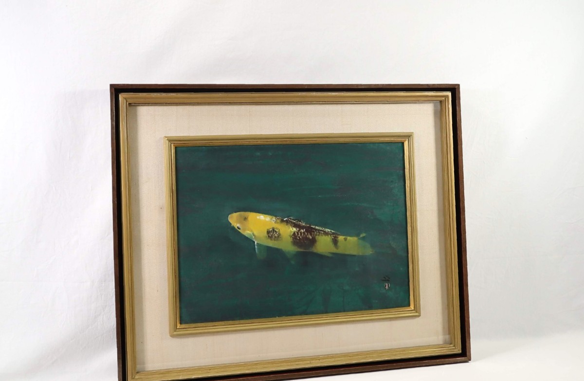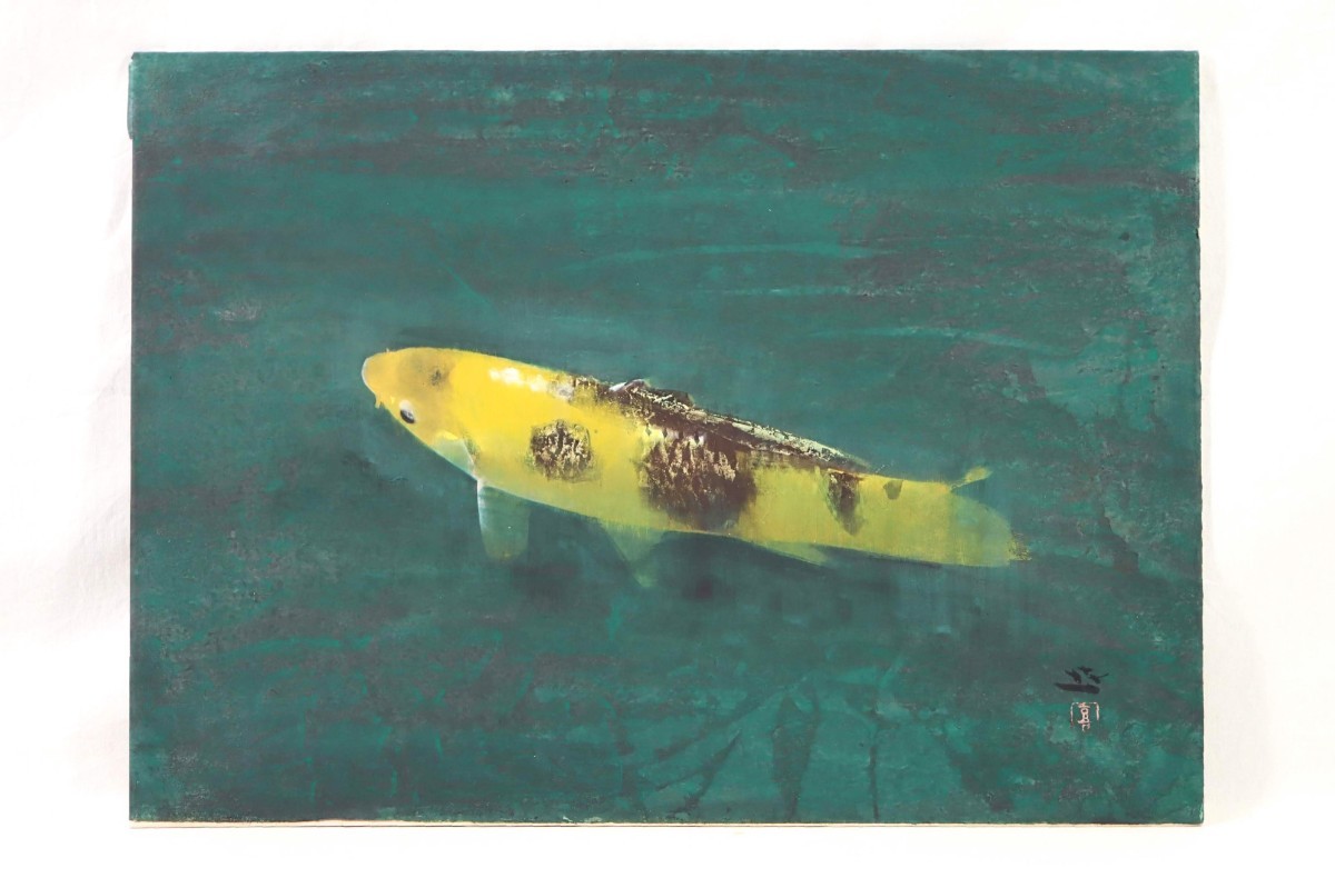 真作 梶喜一 日本画「遊鯉」画寸 58cm×42cm 京都府出身 晨鳥社 日展審査員 西村五雲に師事 透き通る清冽な池をたゆたい悠々と泳ぐ 7741