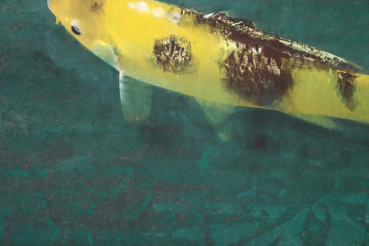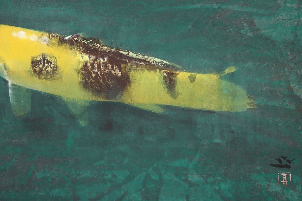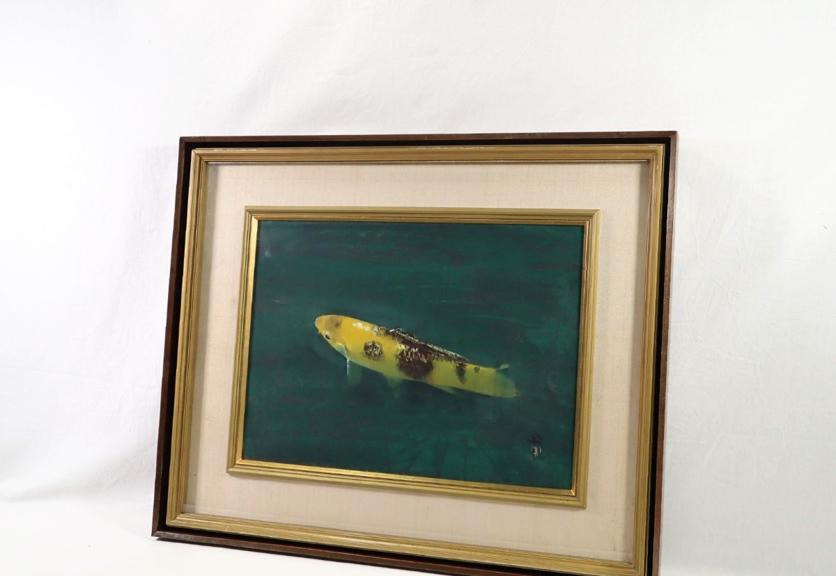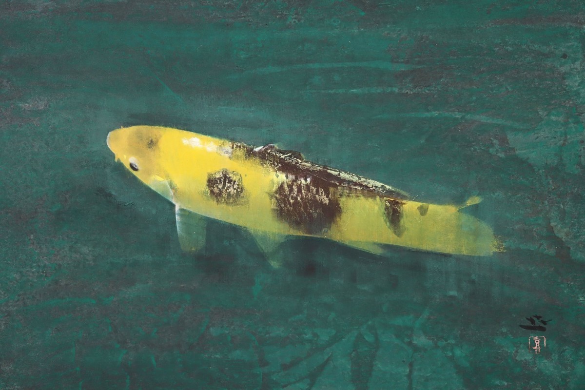 真作 梶喜一 日本画「遊鯉」画寸 58cm×42cm 京都府出身 晨鳥社 日展審査員 西村五雲に師事 透き通る清冽な池をたゆたい悠々と泳ぐ 7741