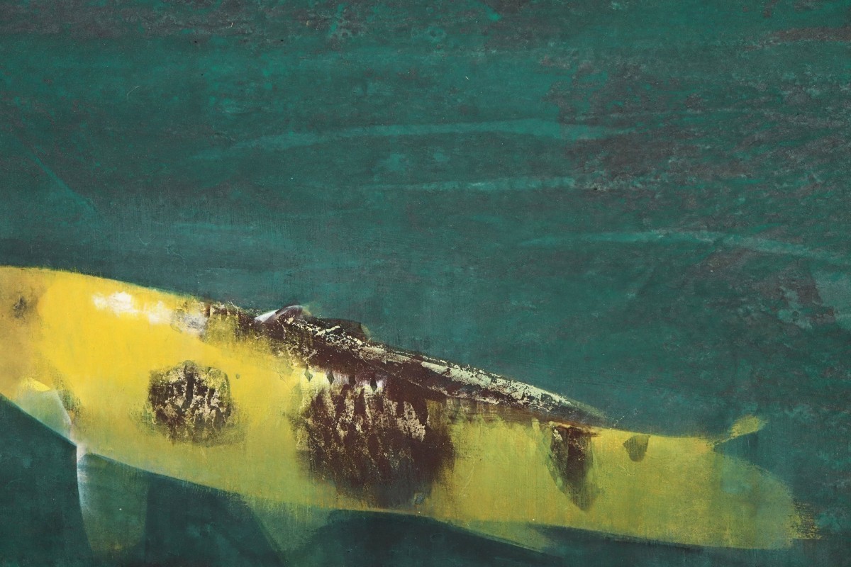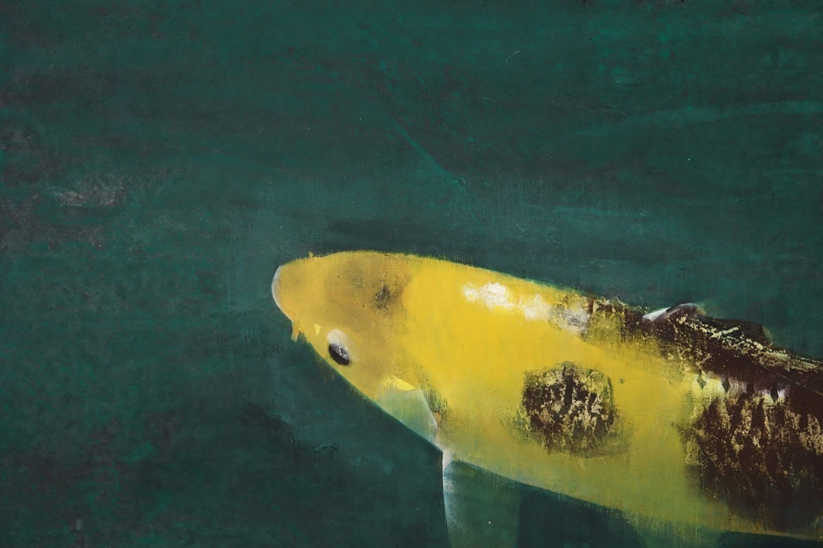 繊細であり写実的な線で描かれる鯉の姿は甘美でありながら、