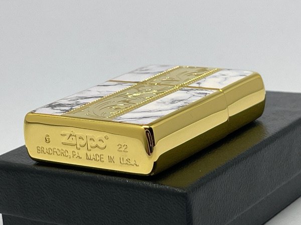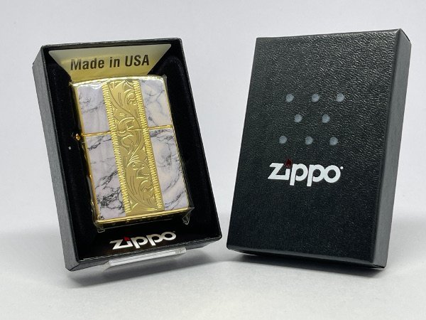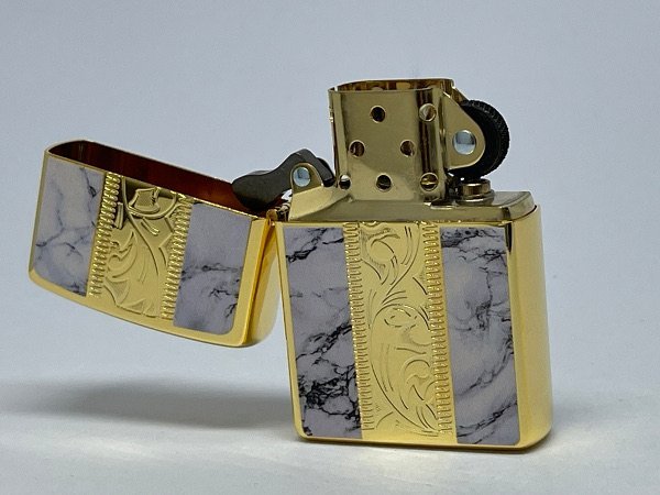 | ZIPPO[ジッポー]両面加工 大理石調&アラベスクデザイン ホワイトゴールド 2GWT-W | |||||||||||