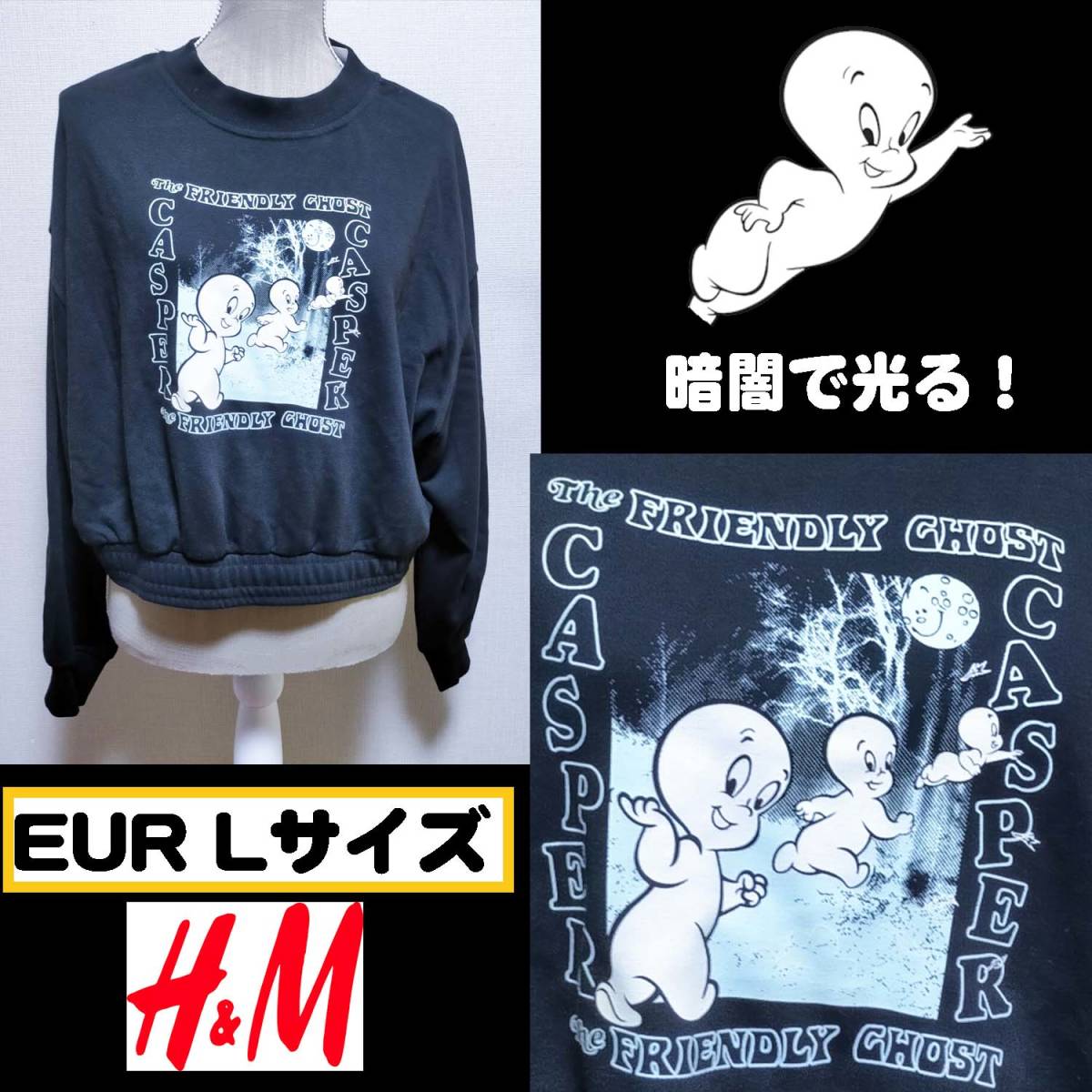 【H&M】キャスパー クロップドスウェットトップス EUR Lサイズ 暗闇で光る