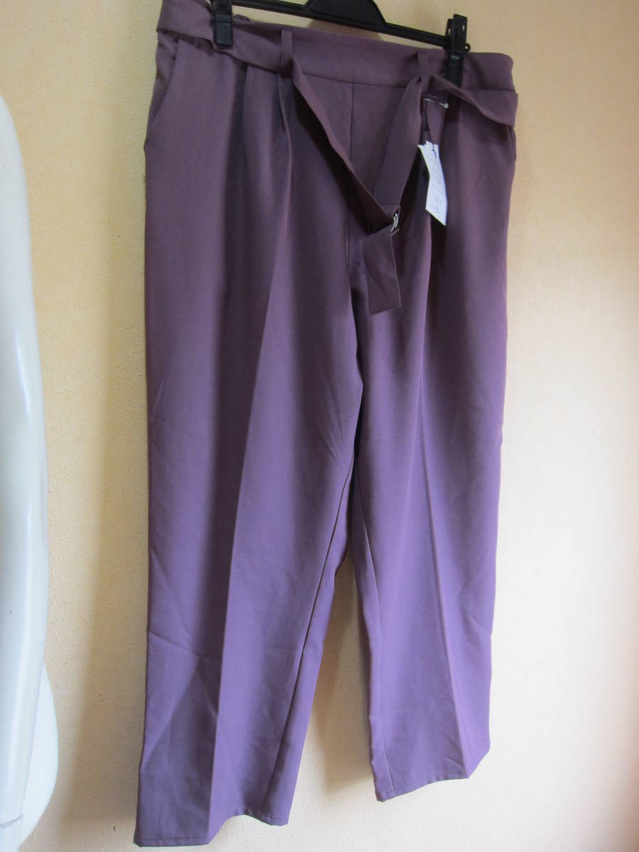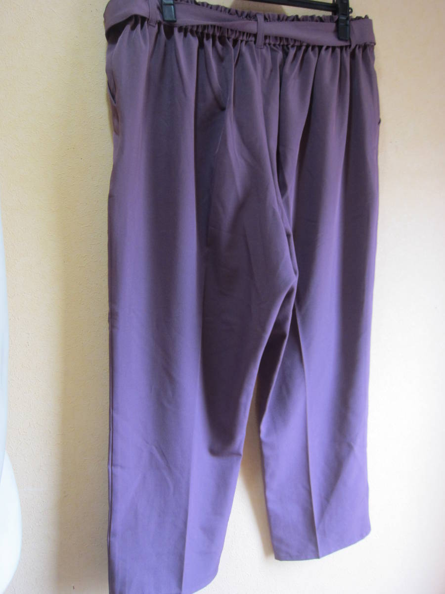 状態は、新品下げ札付の状態です。 平置きで、ウエストは部分ゴム入り、股上約37cm、股下約62cm、腿幅約38cm、裾幅約21cmです。 注)画像の白い丸はフラッシュの加減で、汚れなどではございません |