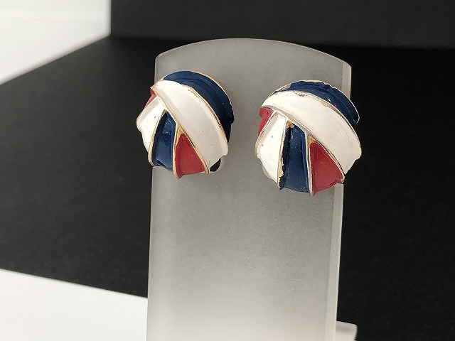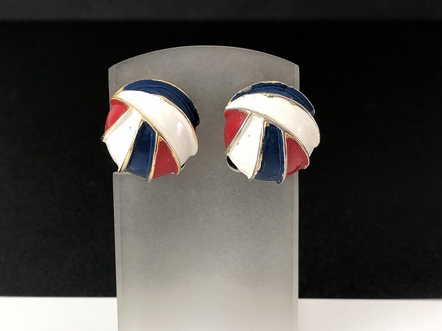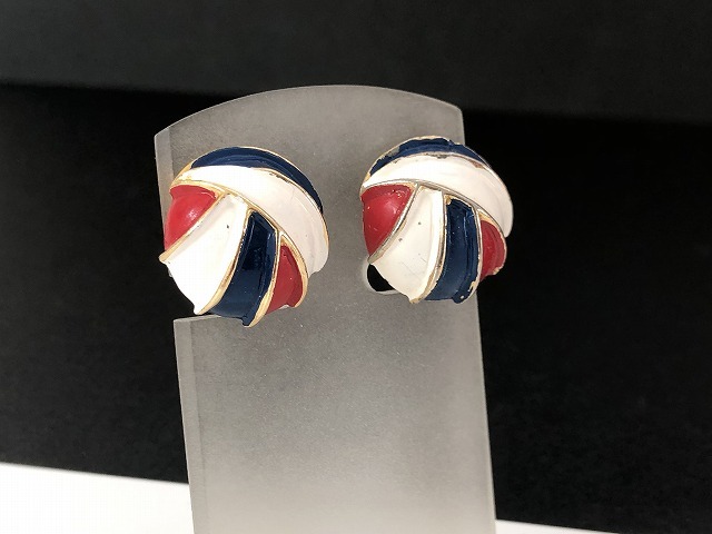 トリコロール エナメルカラー イヤリング USA [ae-792]オールド ヴィンテージ コスチュームジュエリー