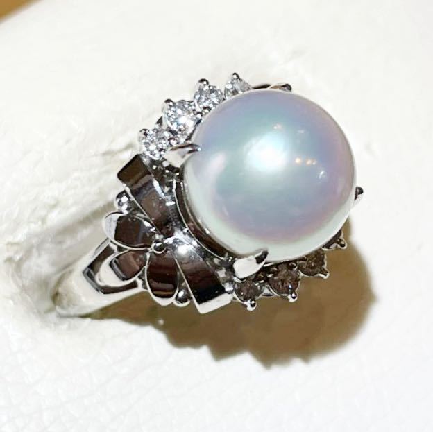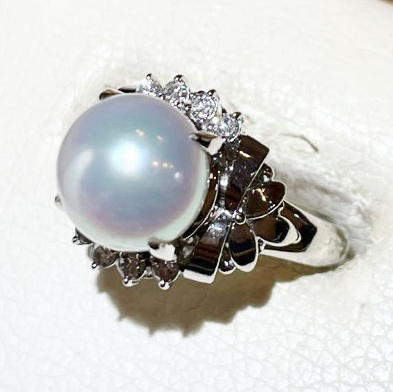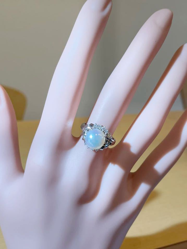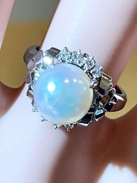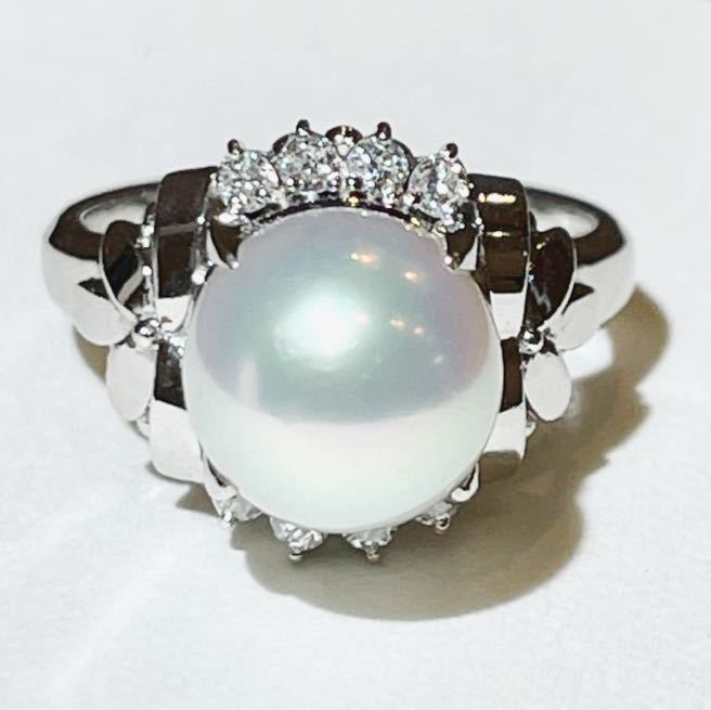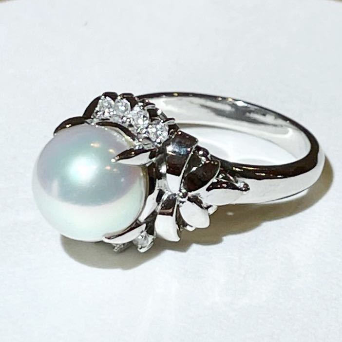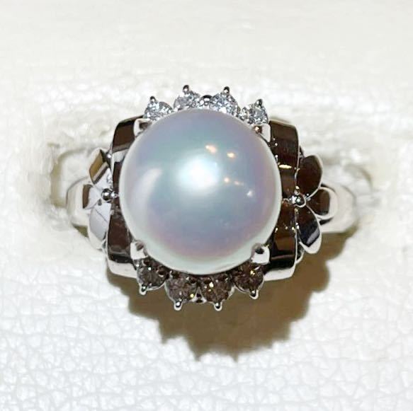 こちらは、Pt900台にパール1個&ダイヤ8石付きデザインリングです。