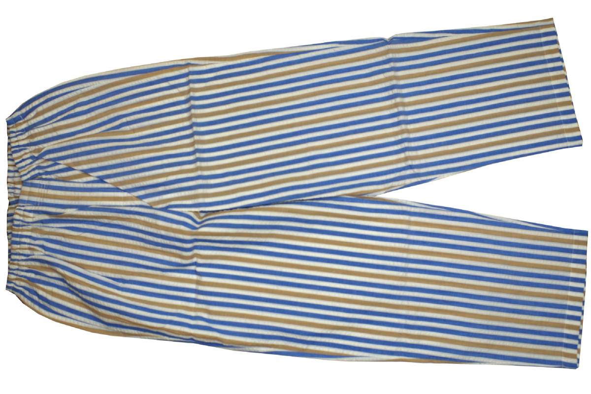 ■ポールスチュアート PAUL STUARTの男性用、半袖&ロングパンツ・パジャマ、新品です。サイズはS、チェスト80-88cm、身長155-165cm、ウエスト68-76cm。上着フロント左右にポケット付き、ロゴマークの刺繍入り。パンツは前開き。素材は綿100%、春・夏シーズンでお使いいただける生地感です。色は白×ベージュ×ブルー。正規ライセンス会社扱い品の日本製。税込定価11,000円です。
