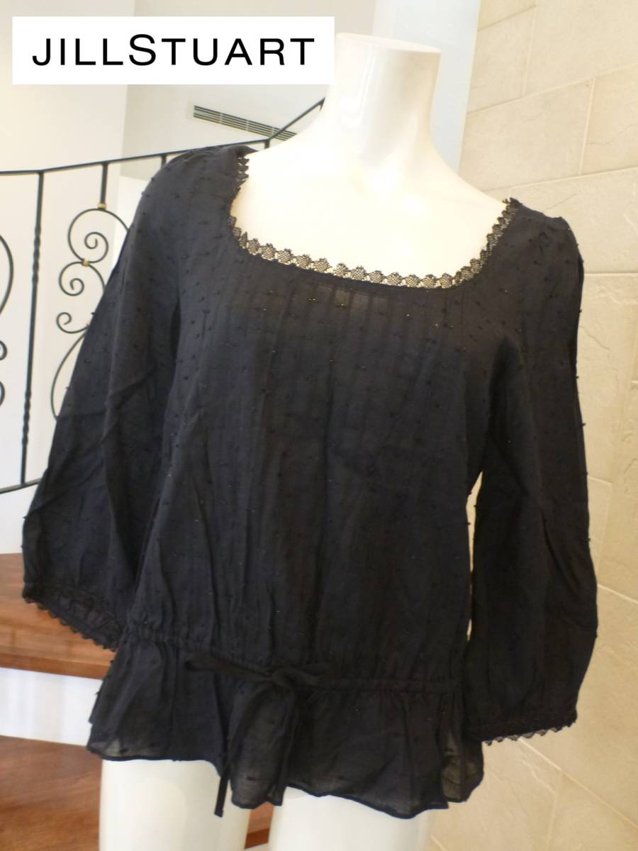 美品 ジルスチュアート JILLSTUART ★ ◆黒 ブラック ウエスト絞れる紐あり ブラウス S