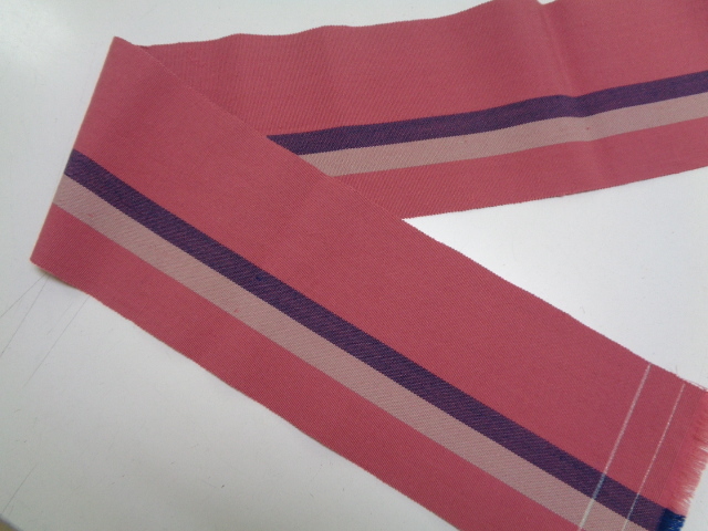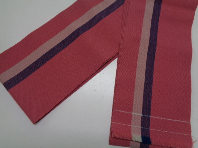a111-60 正絹 半幅平帯 紬 両面 縞文 昭和レトロ アンティーク