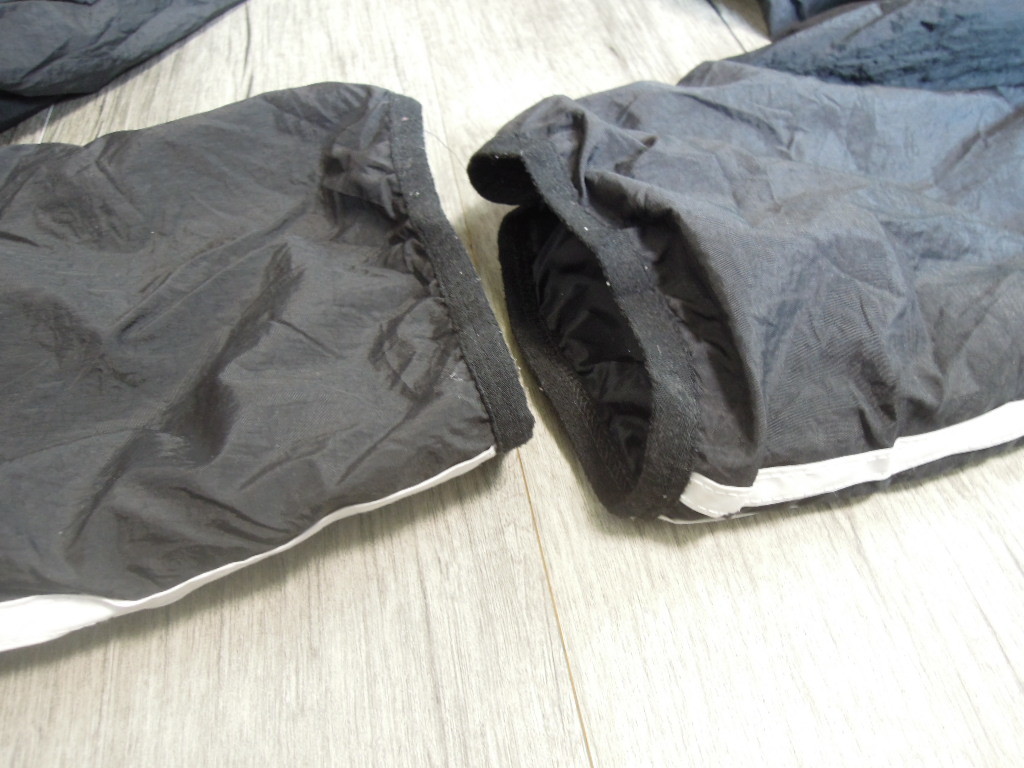 ウエストにゴム&ヒモあり、サイドポケッなし、裏地あり、裾サイドにジップなし