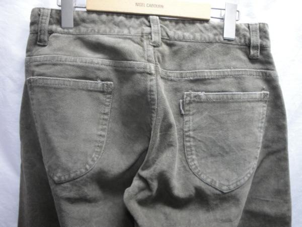 カジュアルブランドOIL CAKE(オイルケーキ)のサンプル綿起毛5ポケットパンツを出品致します。上質な起毛綿布素材を使用しダメージ加工を施し、ユーズドの風合いに仕立ててあります。ダメージ加工起毛綿布だから生地も柔らかくはきやすいと思います。これからの季節、色々な合わせが楽しめ活躍すると思います。未使用品ですが、サンプル品(試作品、未完成品)ダメージ加工、生地の特性の為、写真には見え難い、生地のシワ、色落ち、色むら、擦り切れ、(★8、9、枚目写真、右足側股下51cm部分に織キズ、10枚目写真、前身右ポケット、後身ポケット下部分織キズ有り)等ございますのでご理解の上、ご入札お願いいたします。格安でお出ししますので(★ノークレーム、ノーリターン)も同意の上、ご検討お願い致します。
