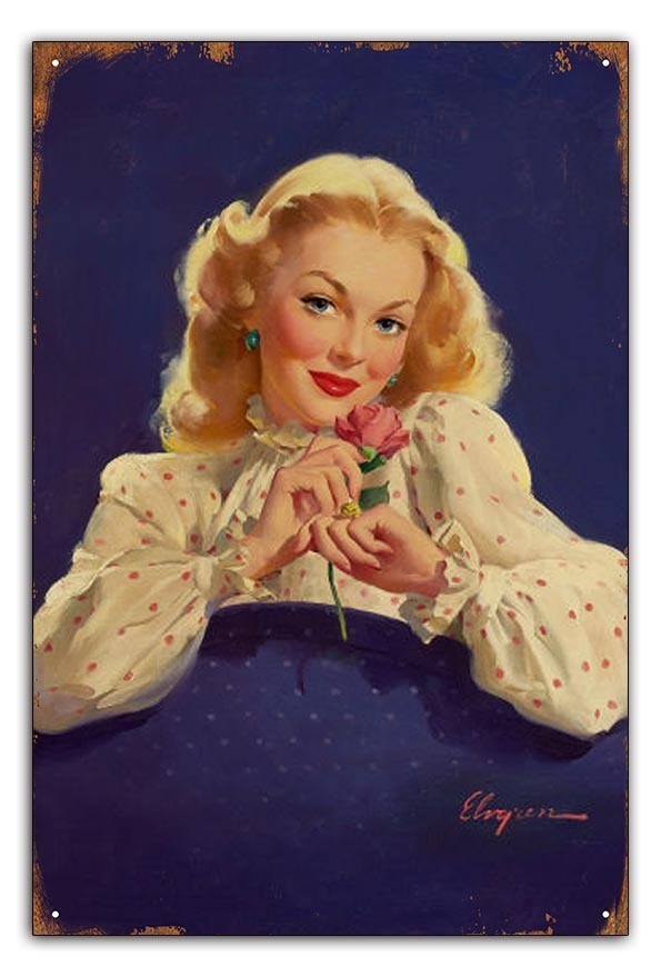 ブリキ看板【Gil Elvgren/ジル・エルブグレン】ピンナップガール/広告雑貨/ヴィンテージ/メタルプレート/レトロ/アンティーク風/サビ風7