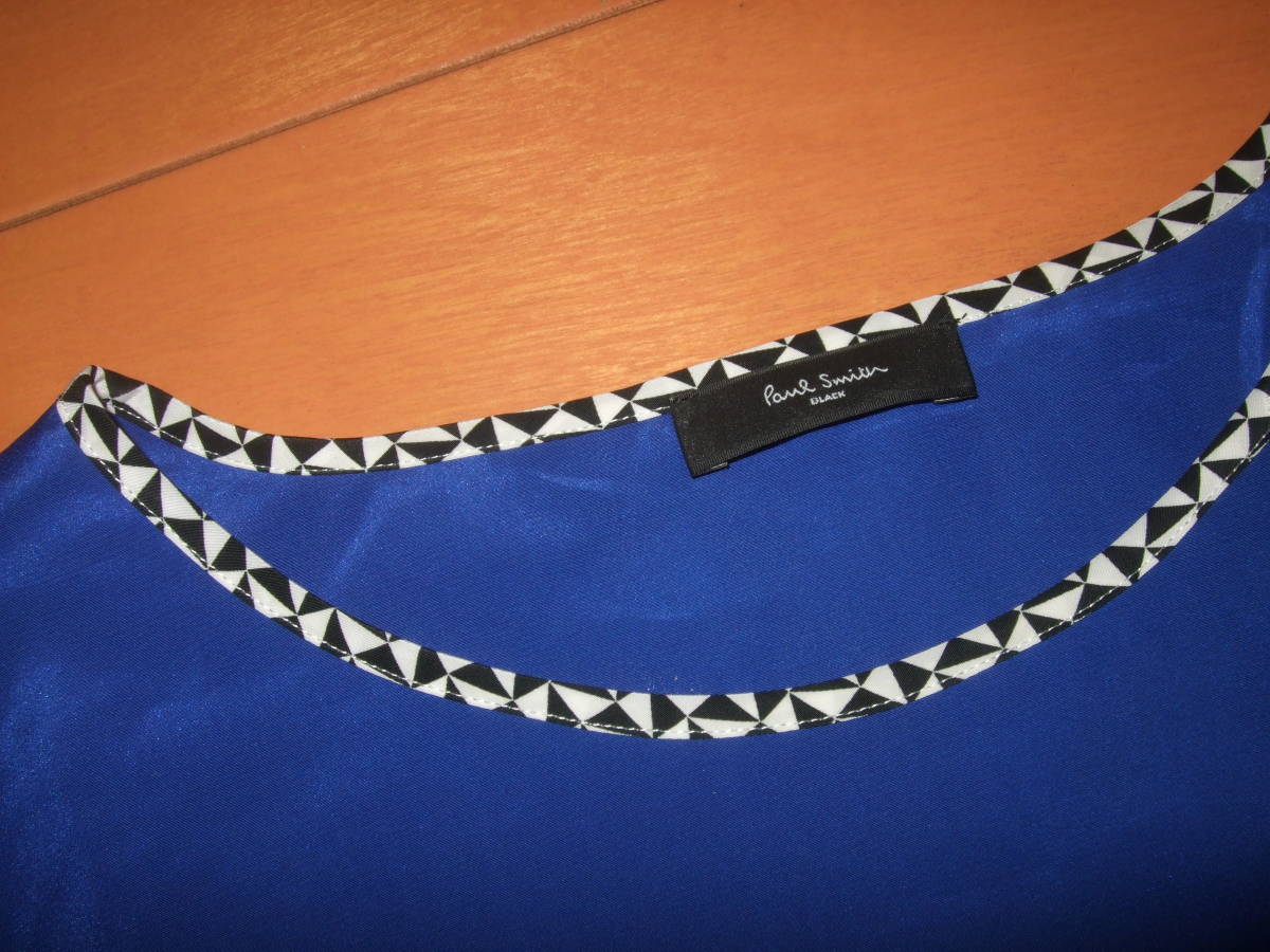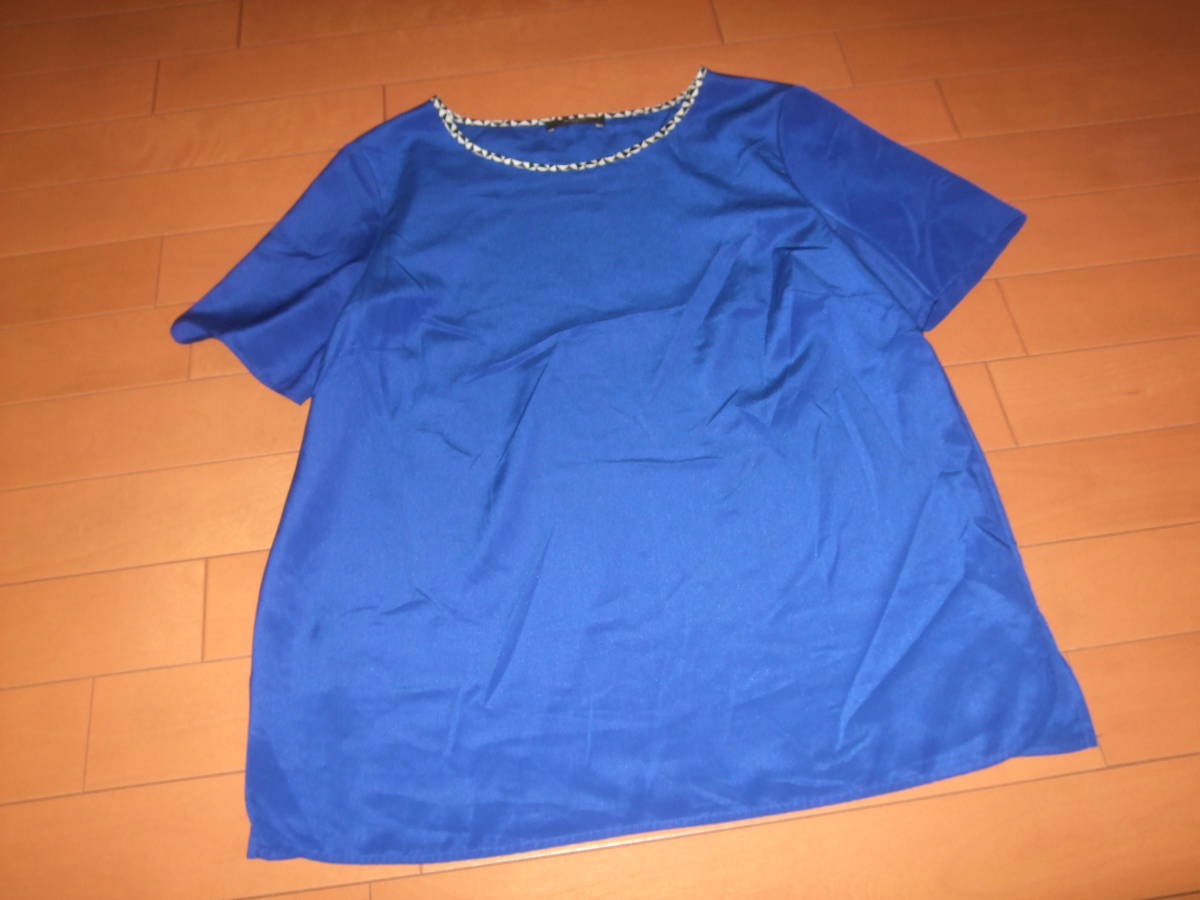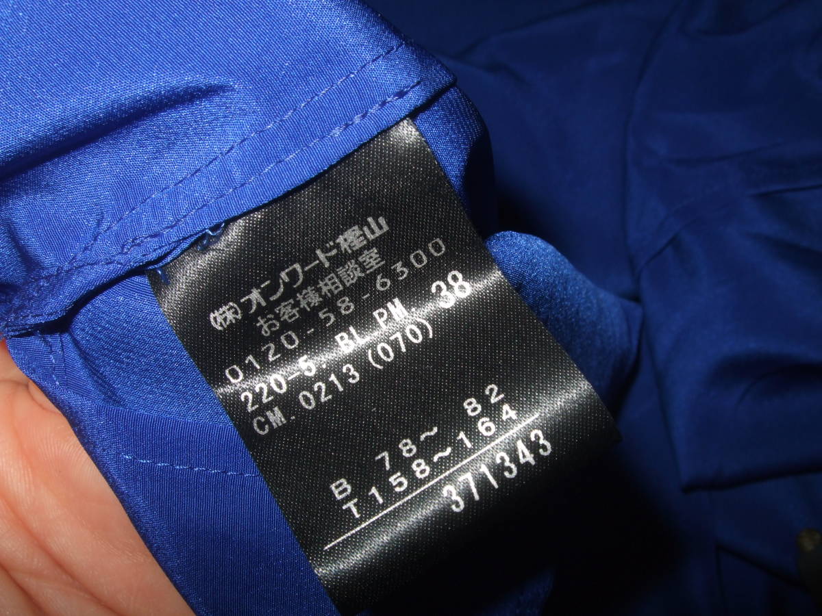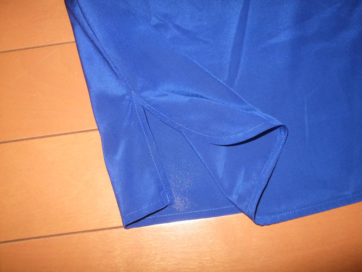 使用状況:鮮やかなブルーが印象的で、インパクトがあります。ポリエステル素材なので、シワにもなりにくく、カジュアルにもドレッシーにも仕上がる1枚です。あまり着用しておらず、状況もよいものです。