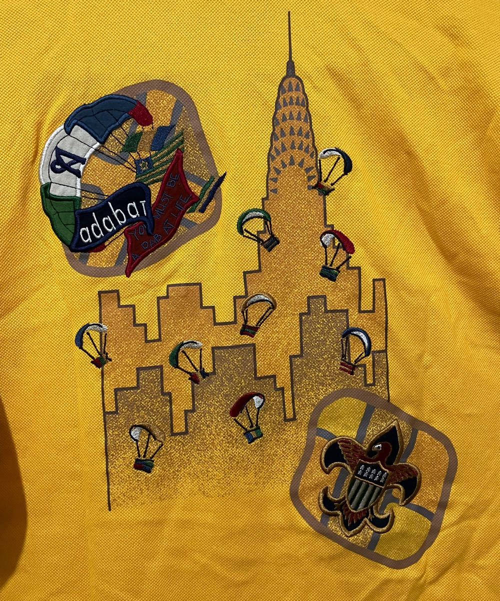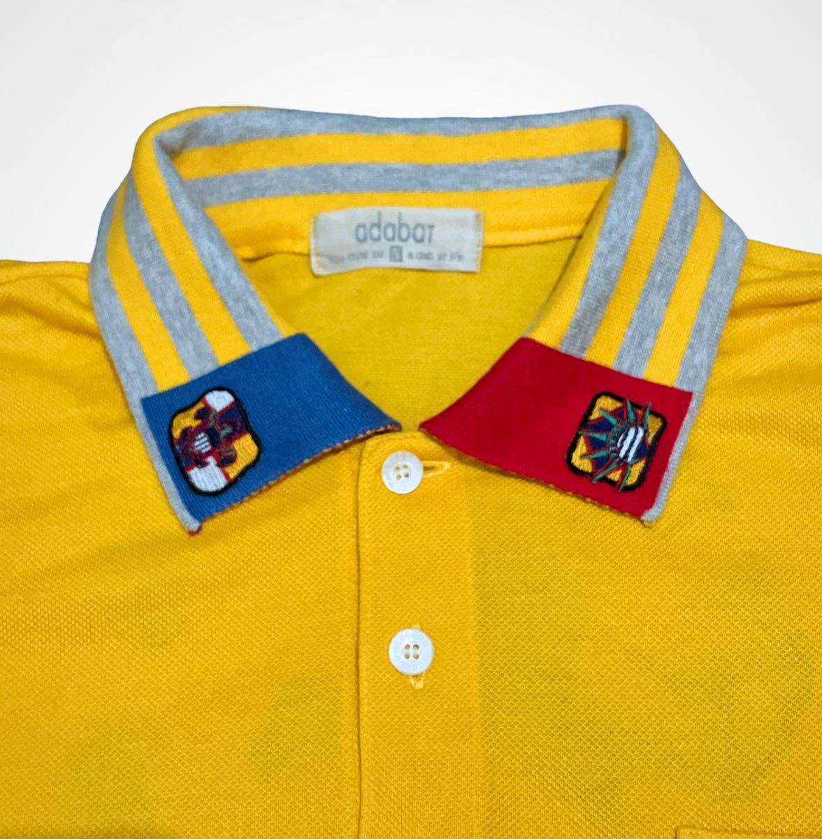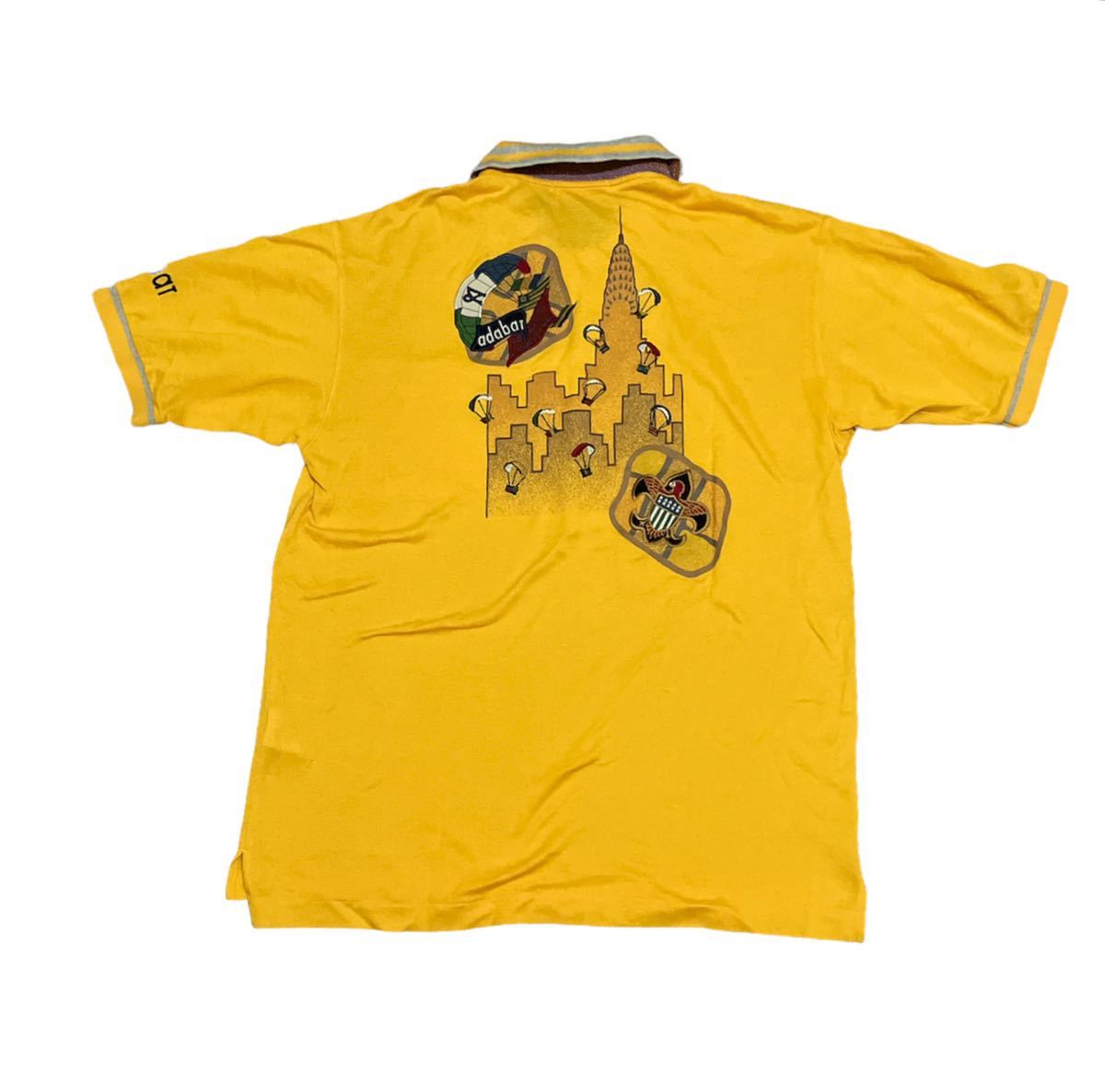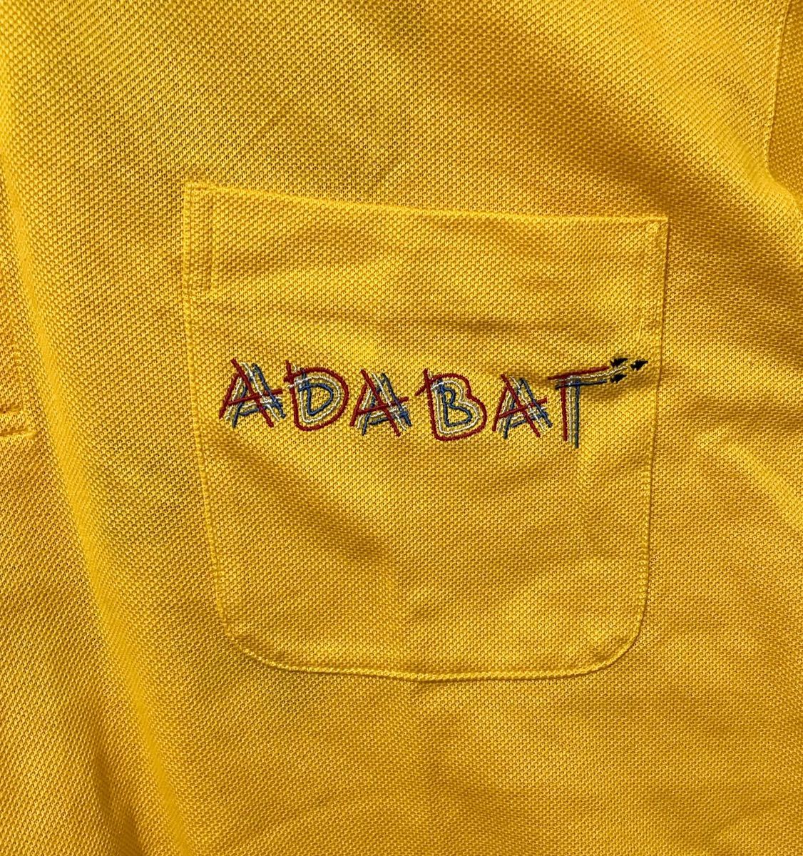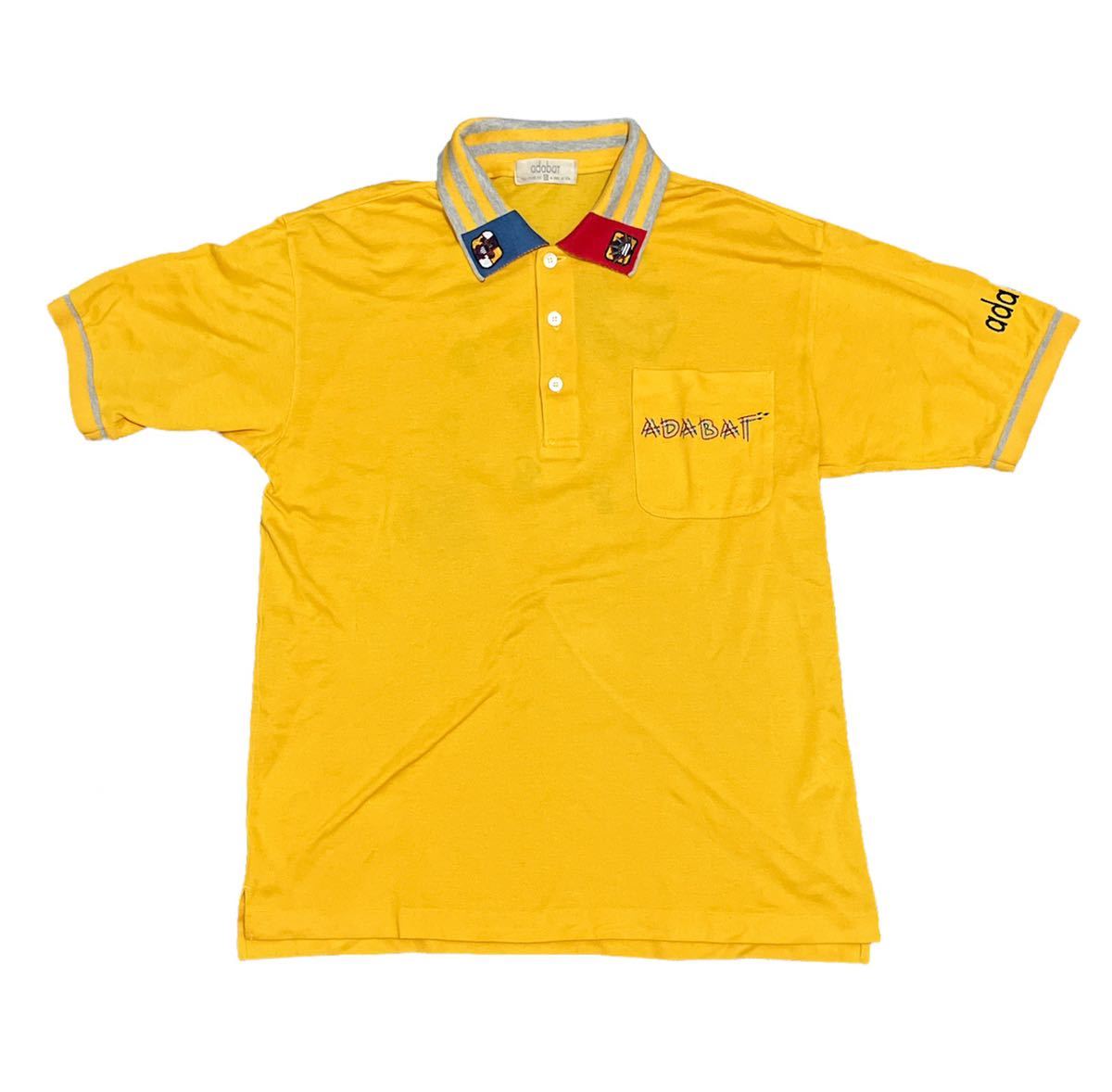【美品】adabat アダバッド 両面刺繍 半袖ポロシャツ 鹿の子素材 ゴルフウェア