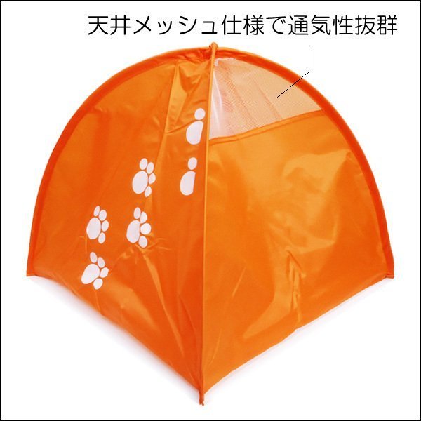テント ペット用 [オレンジ] 犬 猫 小型用 肉球柄 ペット ハウス /16