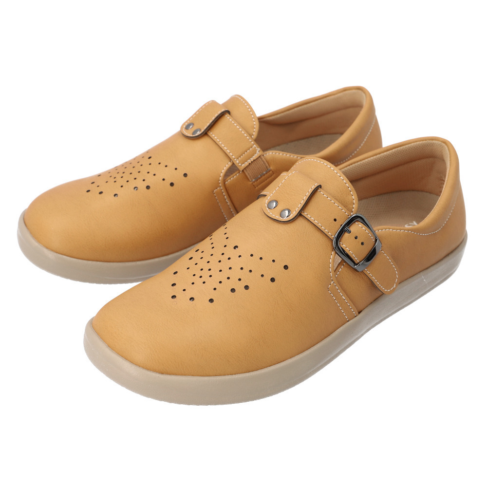 ☆ キャメル ☆ 24cm レディース シューズ 通販 カジュアル 幅広 疲れにくい ゆったり 歩きやすい 靴 調整可能 ベルト 調節 4E 疲労軽減