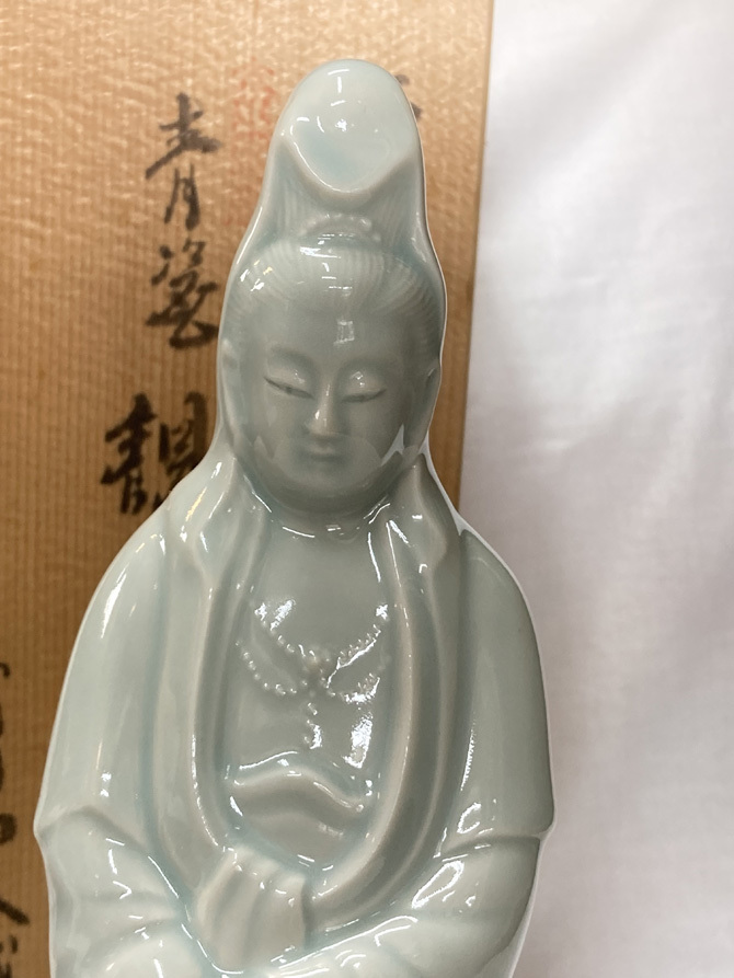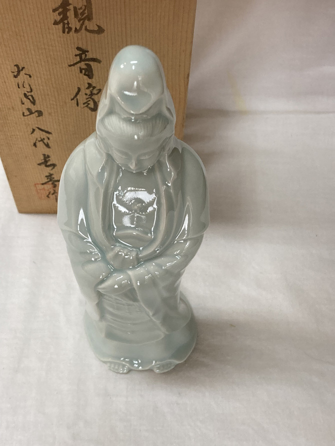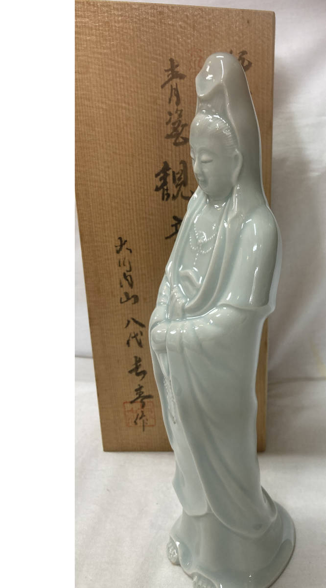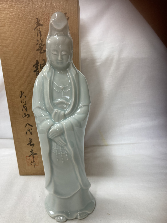 観音像 伊万里焼青磁観音像 八代 小笠原長春  738