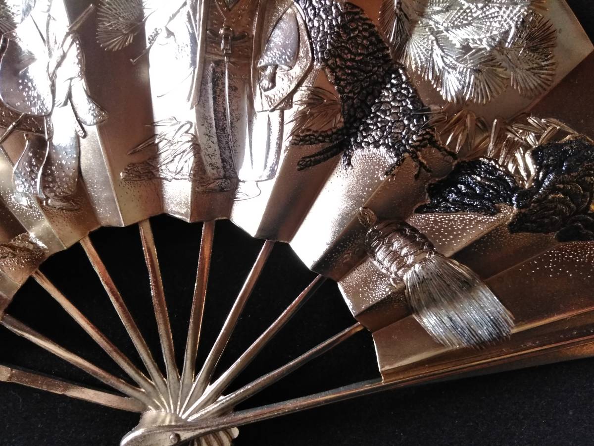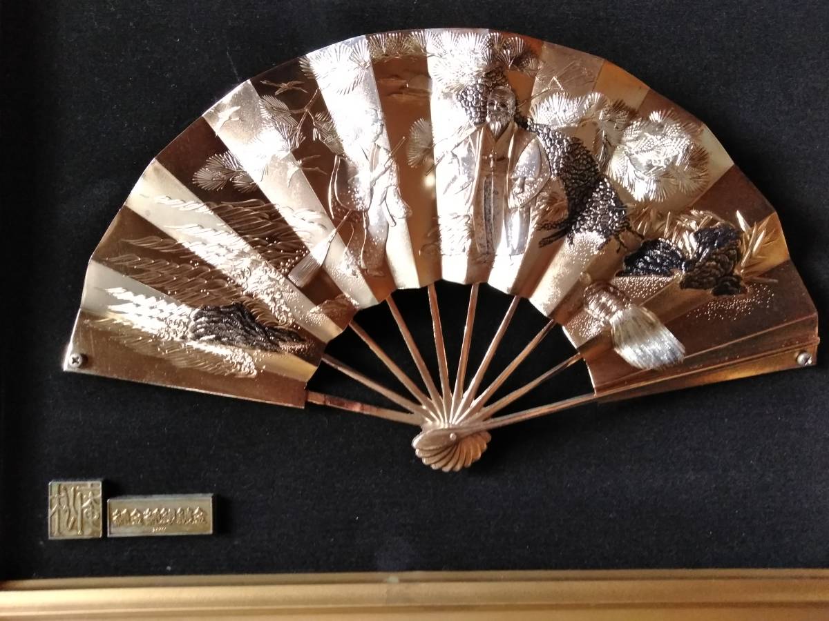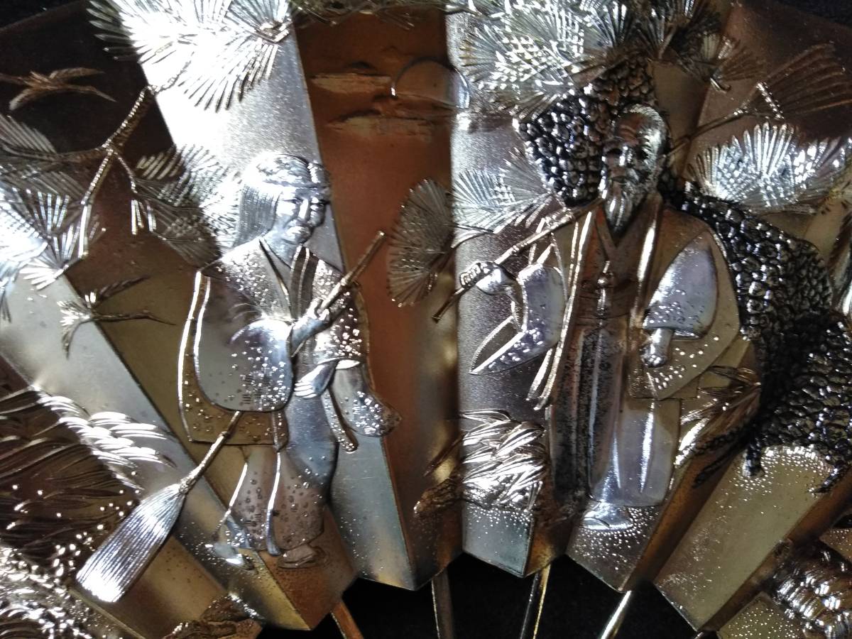扇  高砂 長寿 金属製 大型ガラス入木製額 52cmx61cmx5cmです。