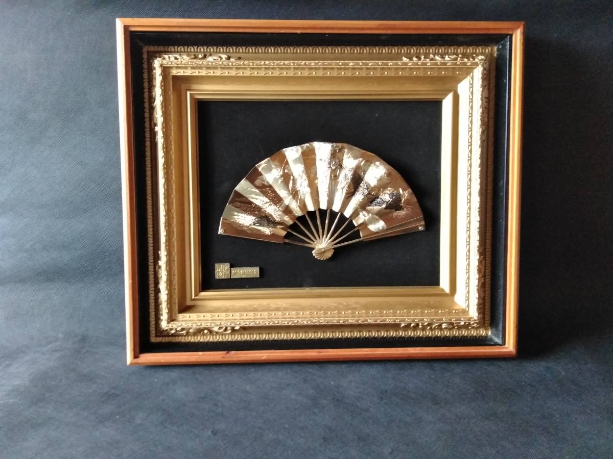 扇 高砂 長寿  金属製 大型ガラス入木製額 52cmx61cmx5cm