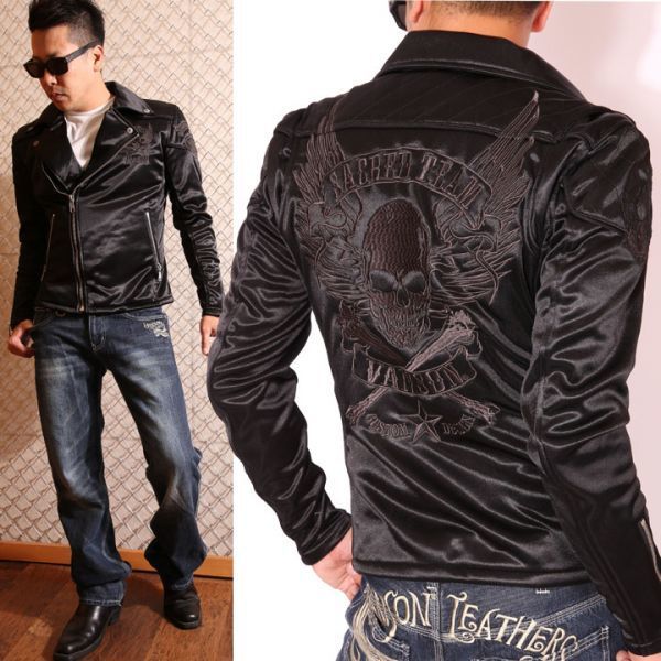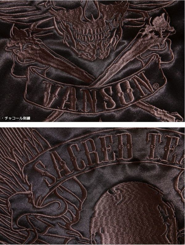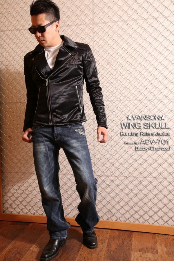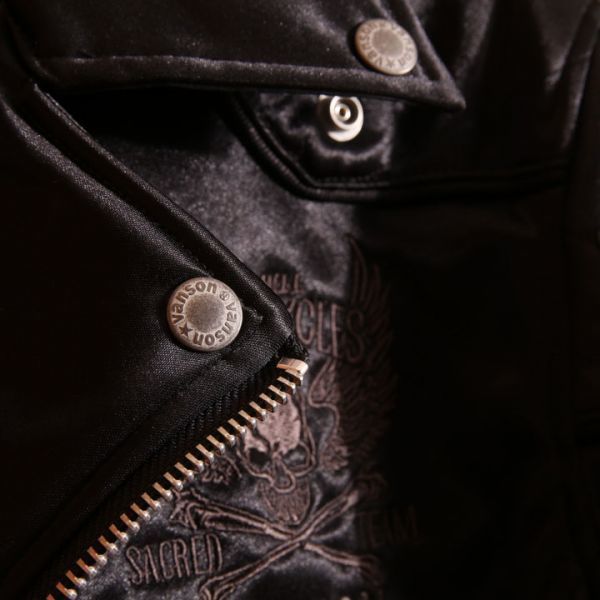 当店別注 バンソン VANSON ボンディング ダブルライダース ジャケット ACV-701 ブラック×チャコール刺繍【Mサイズ】刺繍 ドクロ スカル