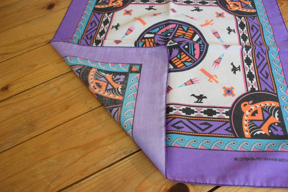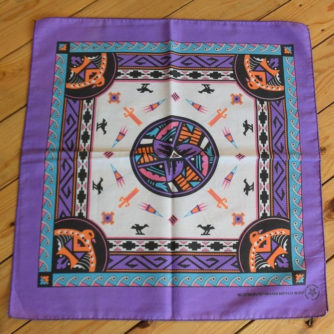 アメリカで購入したセカンドハンド(古着)の、ネイティブ柄バンダナです。