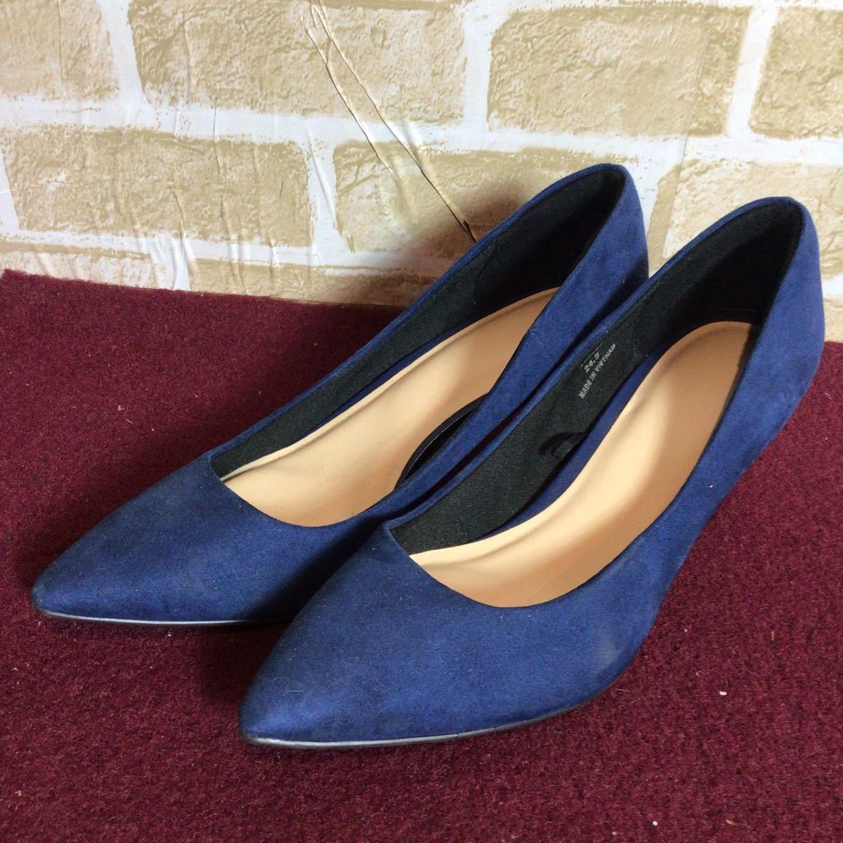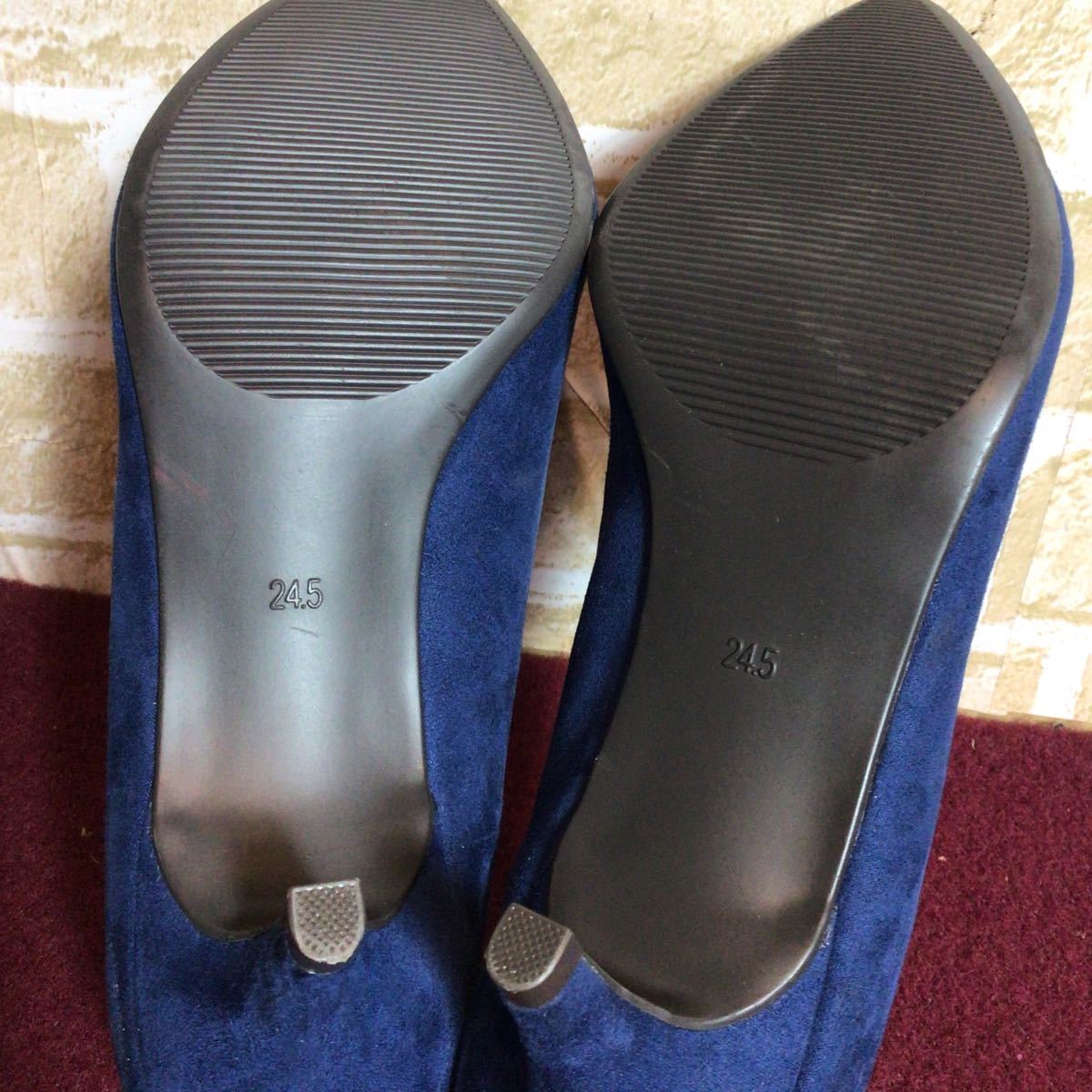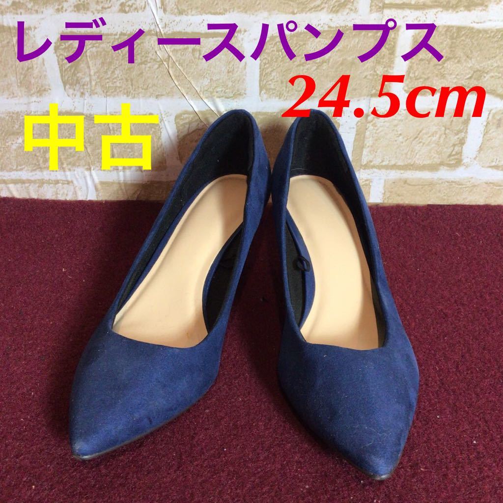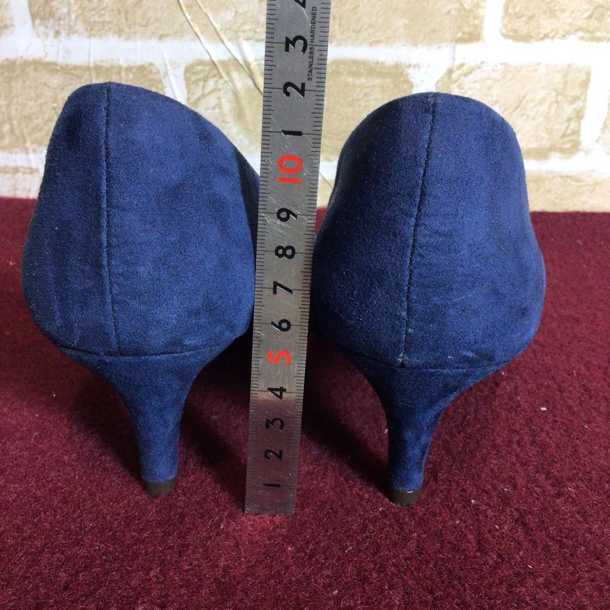 【売り切り!送料無料!】A-212 レディースパンプス!スエード!ネイビー系!24.5cm!パンプス!ポイントトゥーパンプス!ヒール6cm!中古!