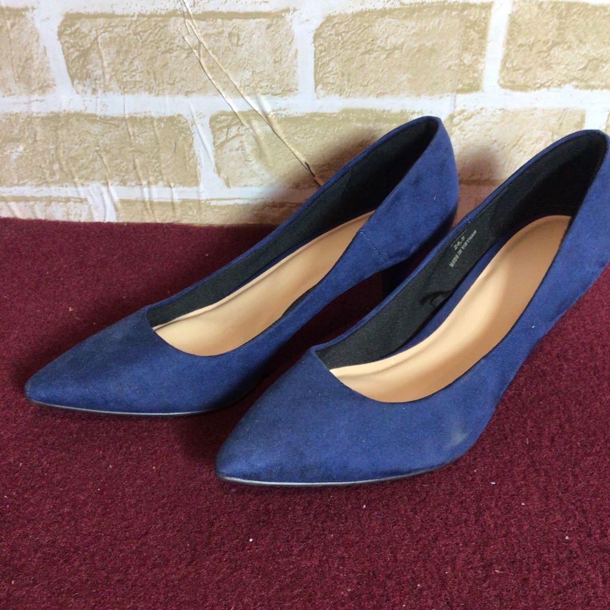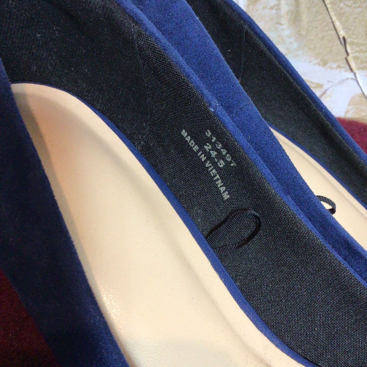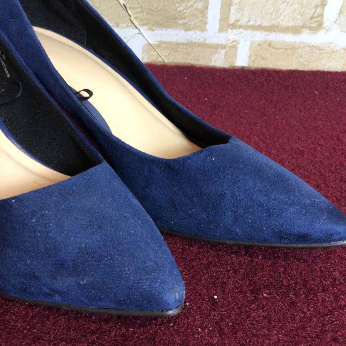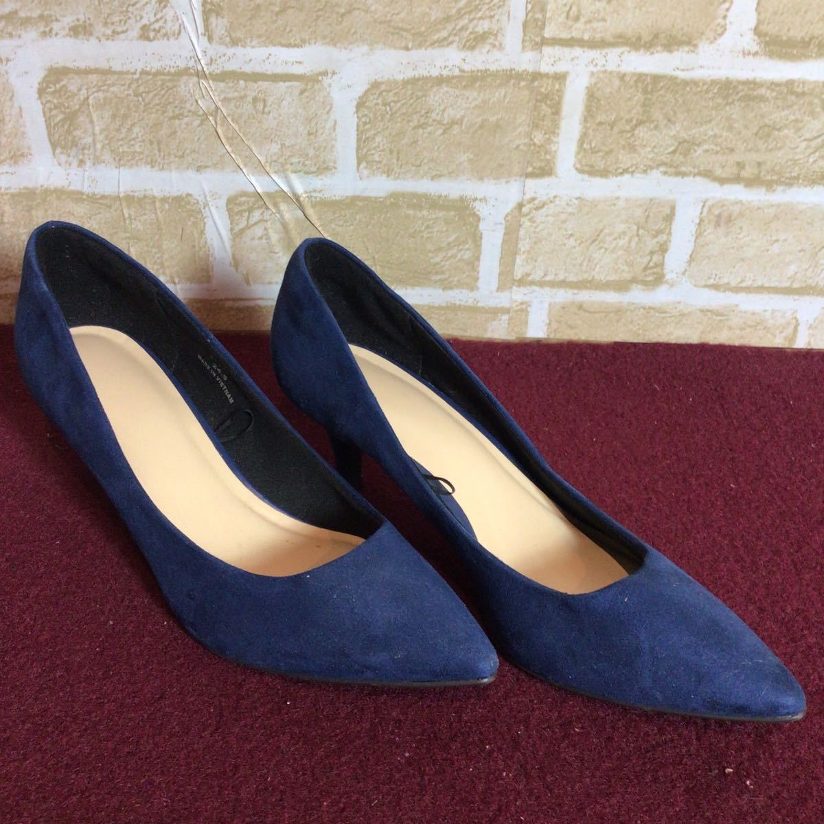 【売り切り!送料無料!】A-212 レディースパンプス!スエード!ネイビー系!24.5cm!パンプス!ポイントトゥーパンプス!ヒール6cm!中古!