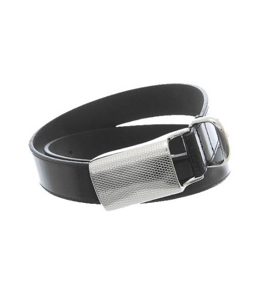 光の反射によって表情が変わるように、バックル全体に微細な模様を入れたドレスベルト。