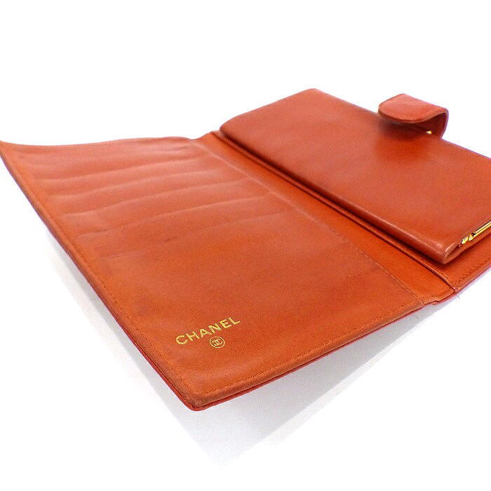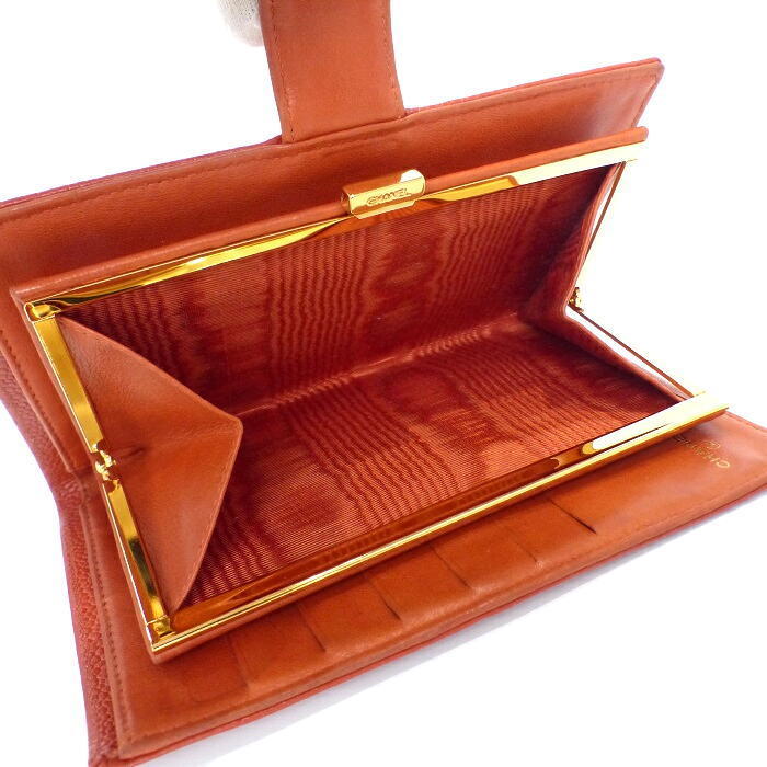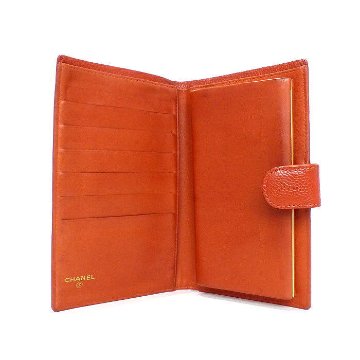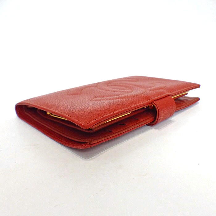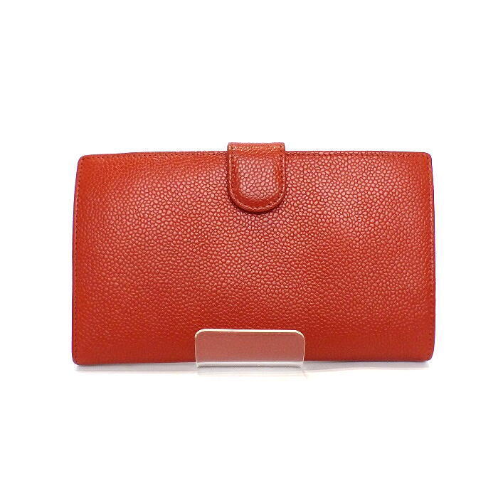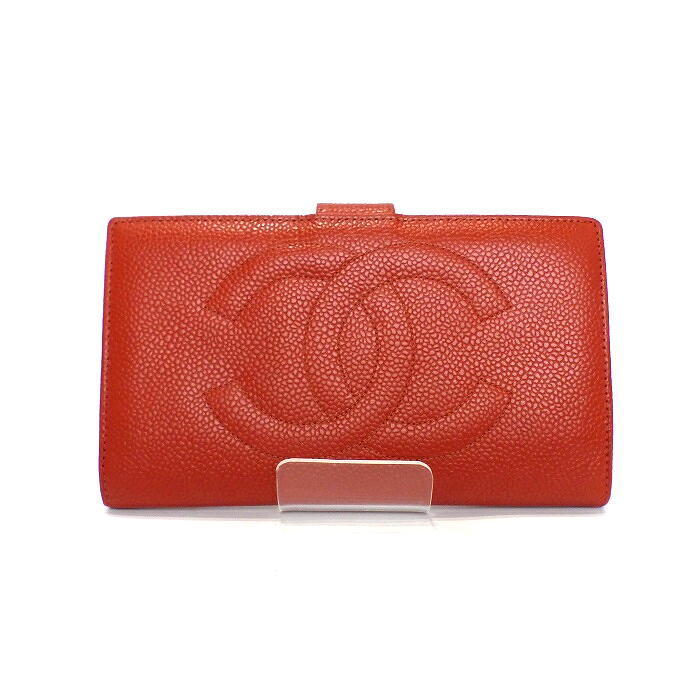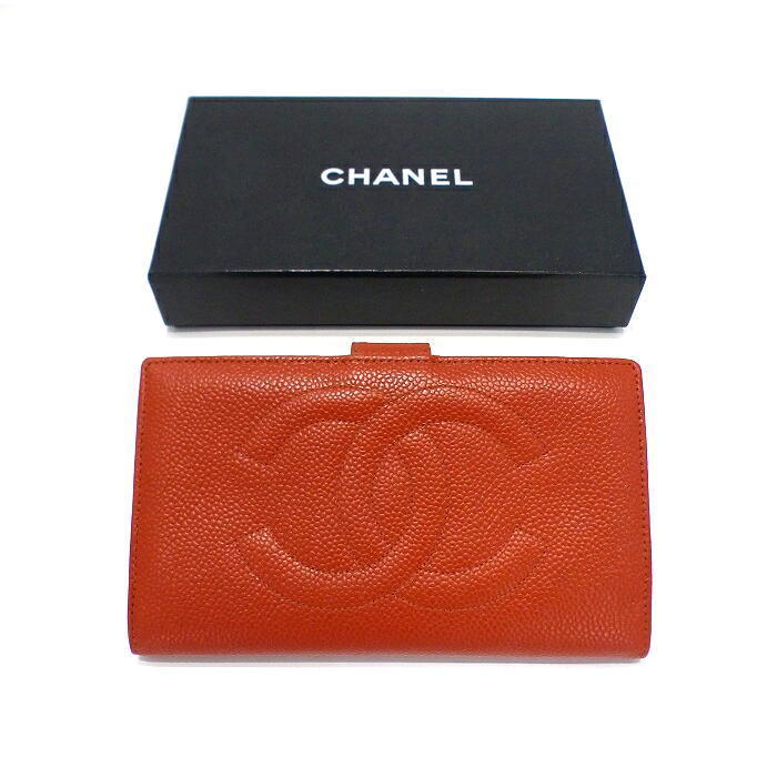 シャネル 正規 キャビアスキン 長財布 新品同様 未使用 激レアカラー オレンジ でかココマーク ウォレット