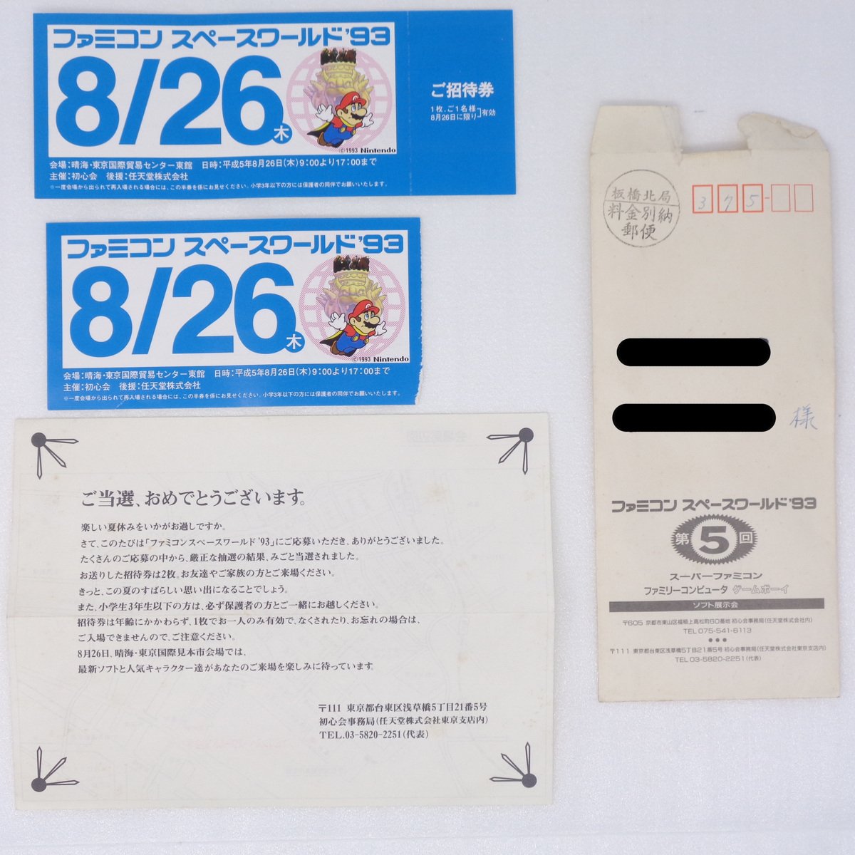 ファミコンスペースワールド'93 招待券2枚と案内状 /8月26日 青チケット/任天堂/スーパーファミコン/ゲームボーイ[送料無料 即決]