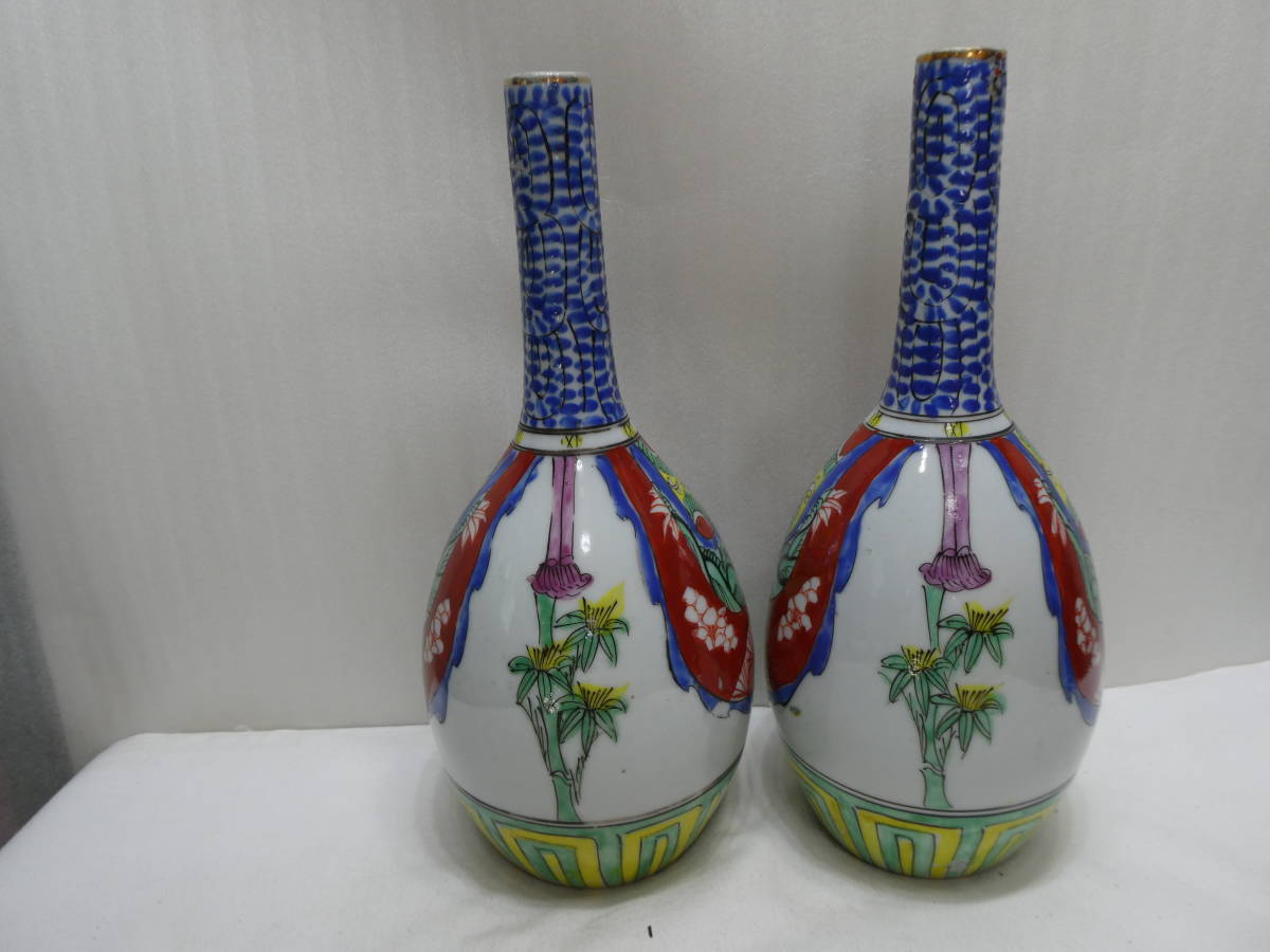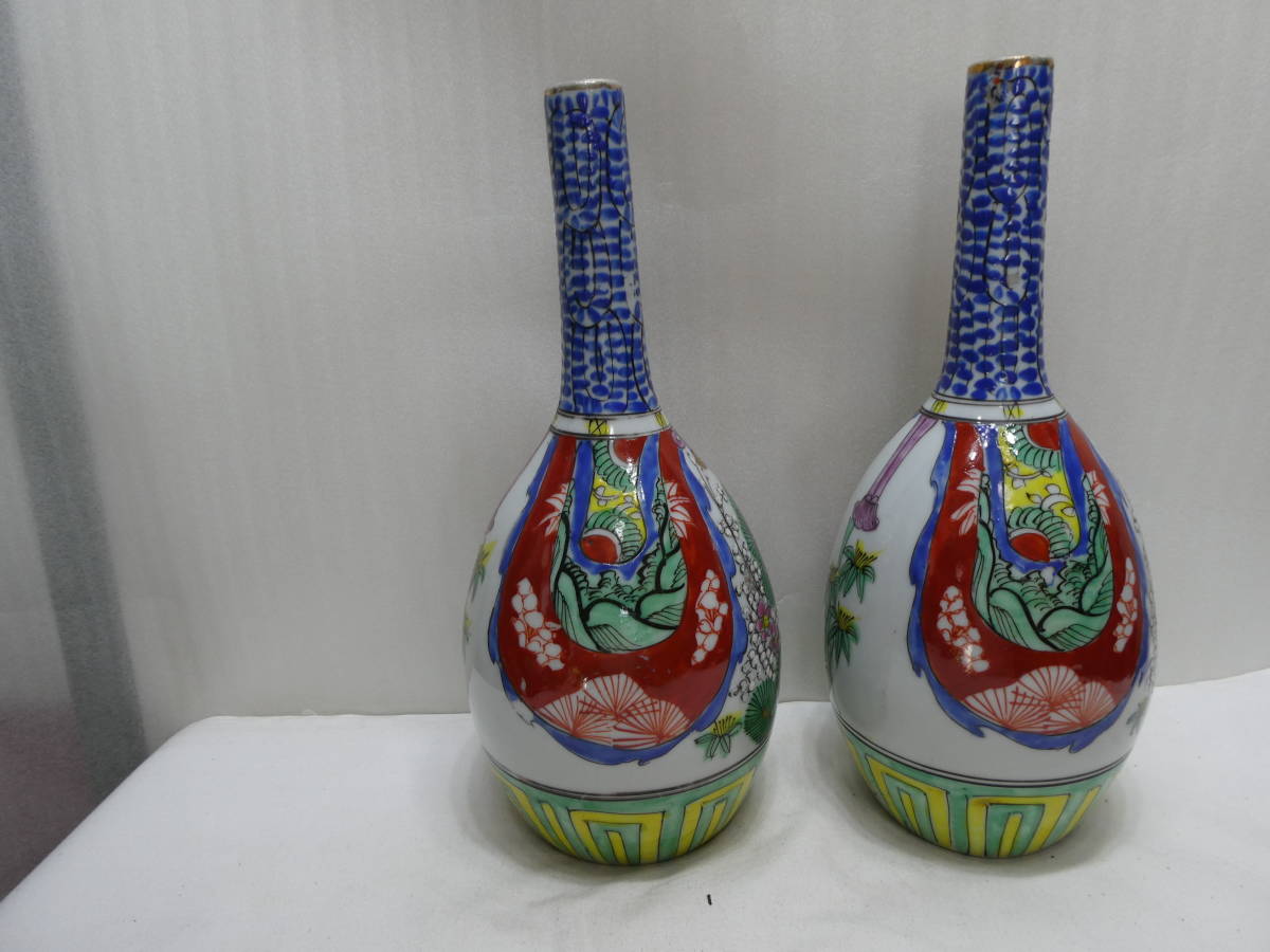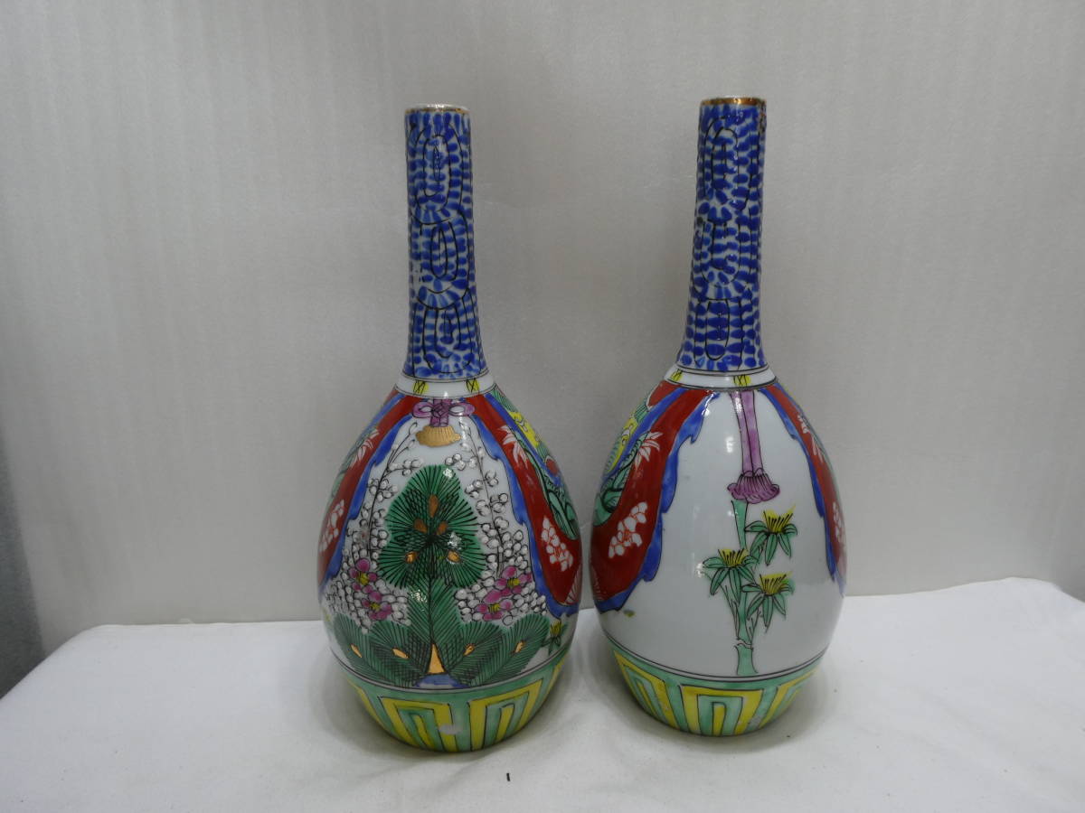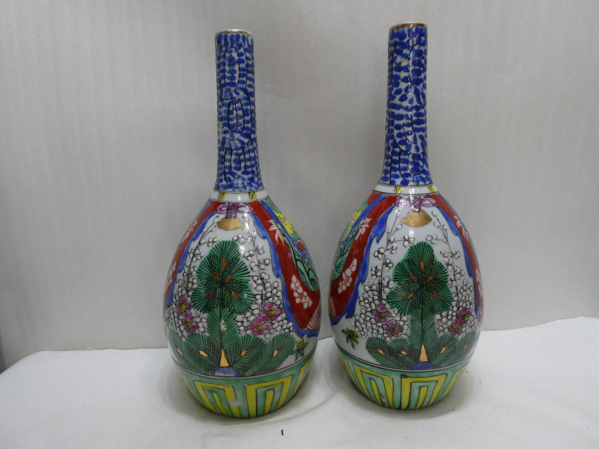 九谷焼、鶴首瓶(松竹梅文)江戸後期~明治時代